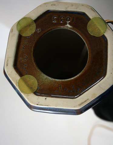 Søholm, Bornholm. Blåglasseret bordlampe. Højde incl. fatning 48,5 cm. Pris: SOLGT