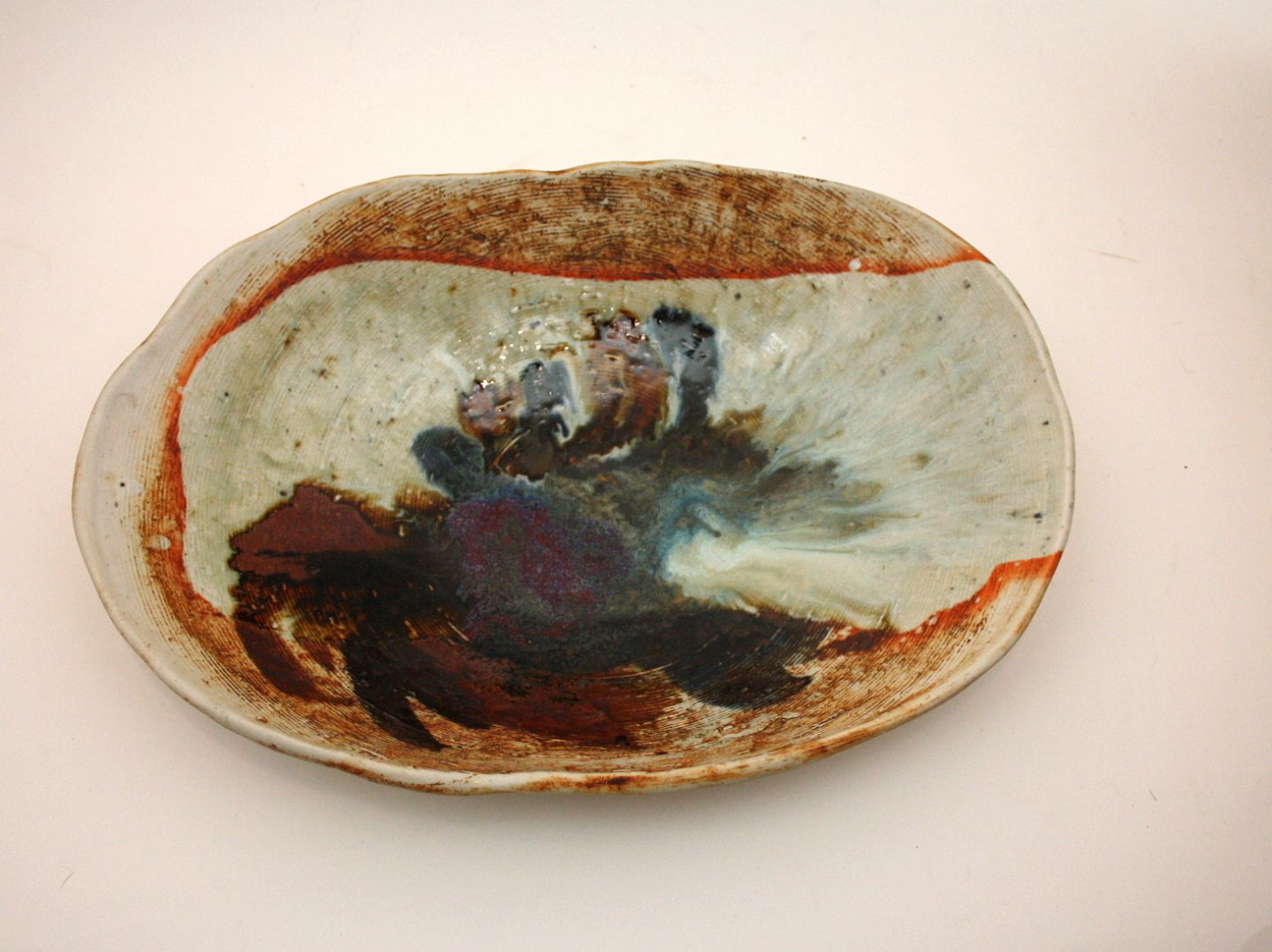 Fra Conny Walthers keramik værksted aflang skål eller fad med mulighed for ophæng. Designet af Bent Stubbe Teglbjærg (ST). Signeret CW og ST. Længde 33,5 cm. Bredde 23,5 cm. Højde 6,5 cm. Pris: SOLGT
