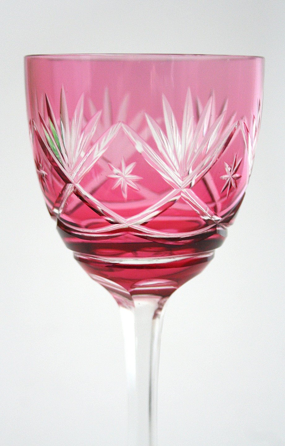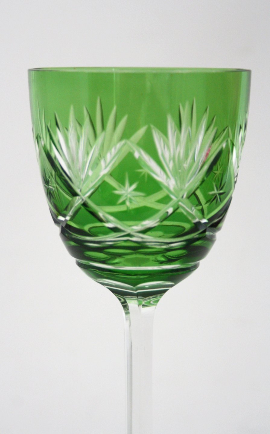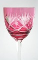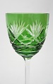 Bøhmisk krystal, vinglas med slibninger på kumme og sleben stilk. Højde 20,50 cm. Pris: 250 kr. stk.