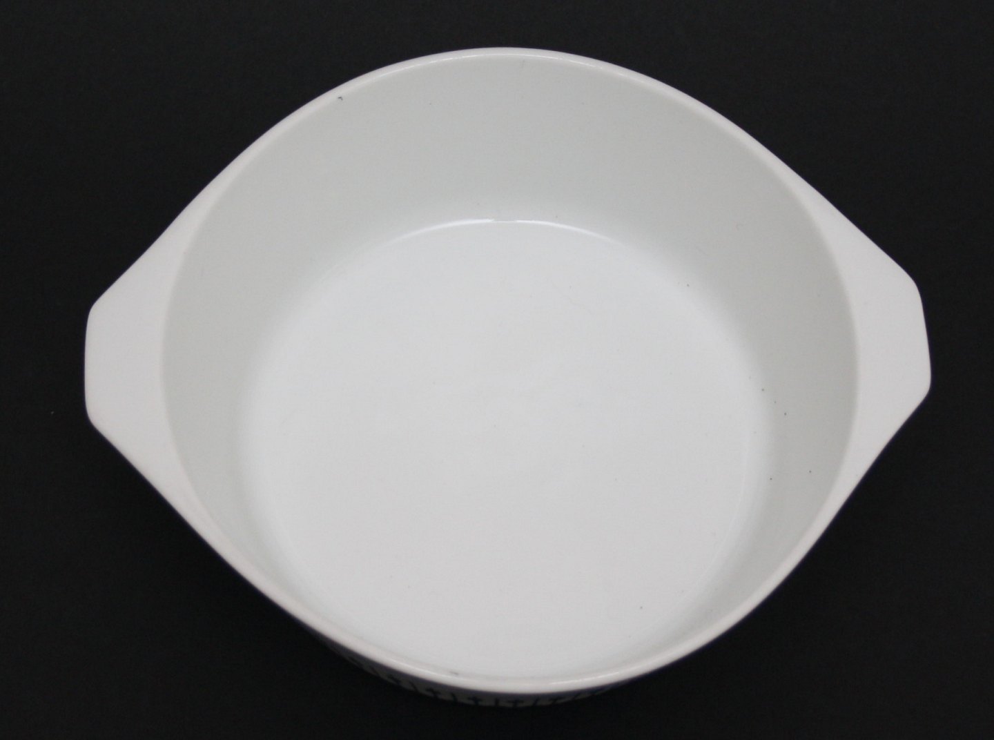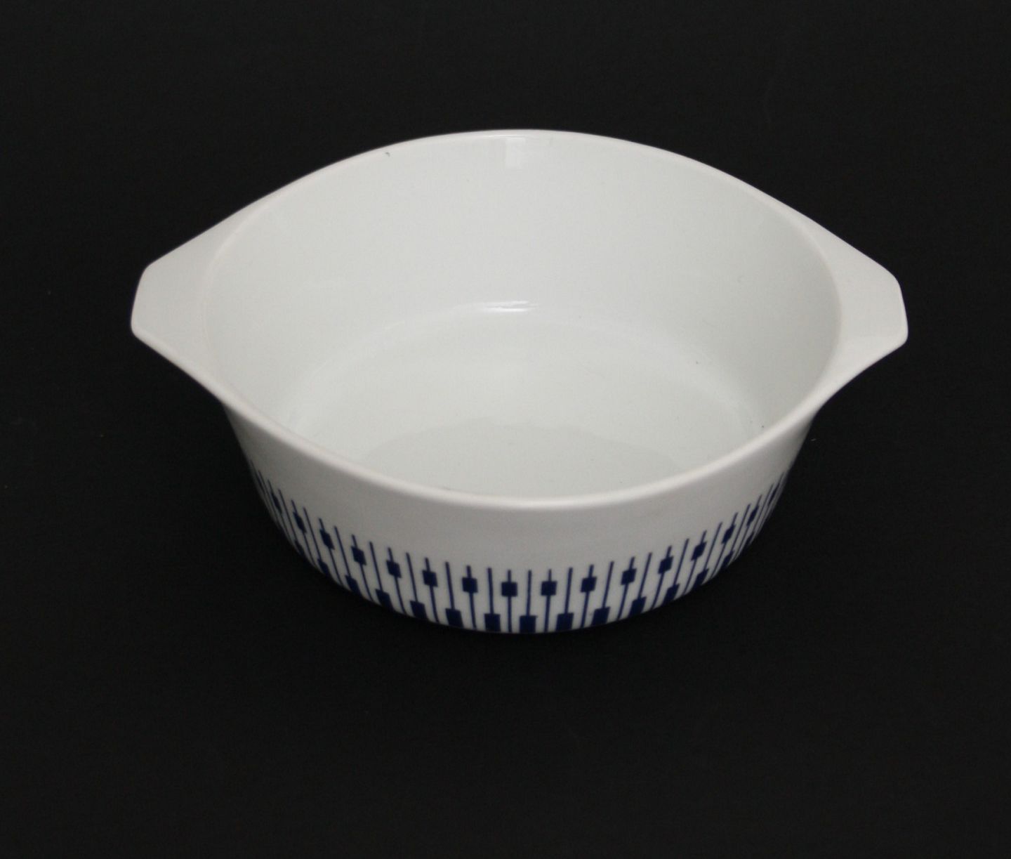 Lyngby porcelæn, Dan-ild 64, Tangent. Designet af Bent Severin i 1963. Lanceret under sloganet fra ild til bord. Gratinskål med ører. Højde 5,5 cm. Diameter 18 cm. Længde 20 cm. Pris: SOLGT