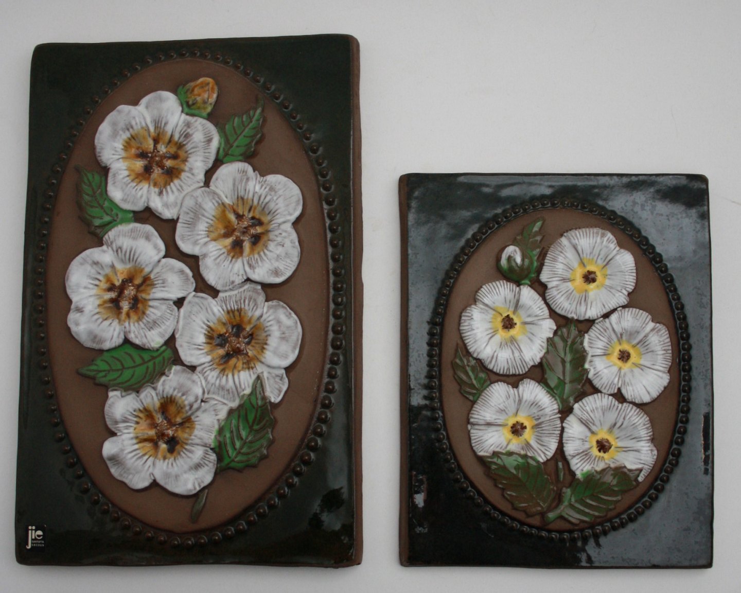 Tv. Hvide blomster. Design Aimo. Formnr. 857. 31,5 x 20,5 cm. Pris: SOLGT