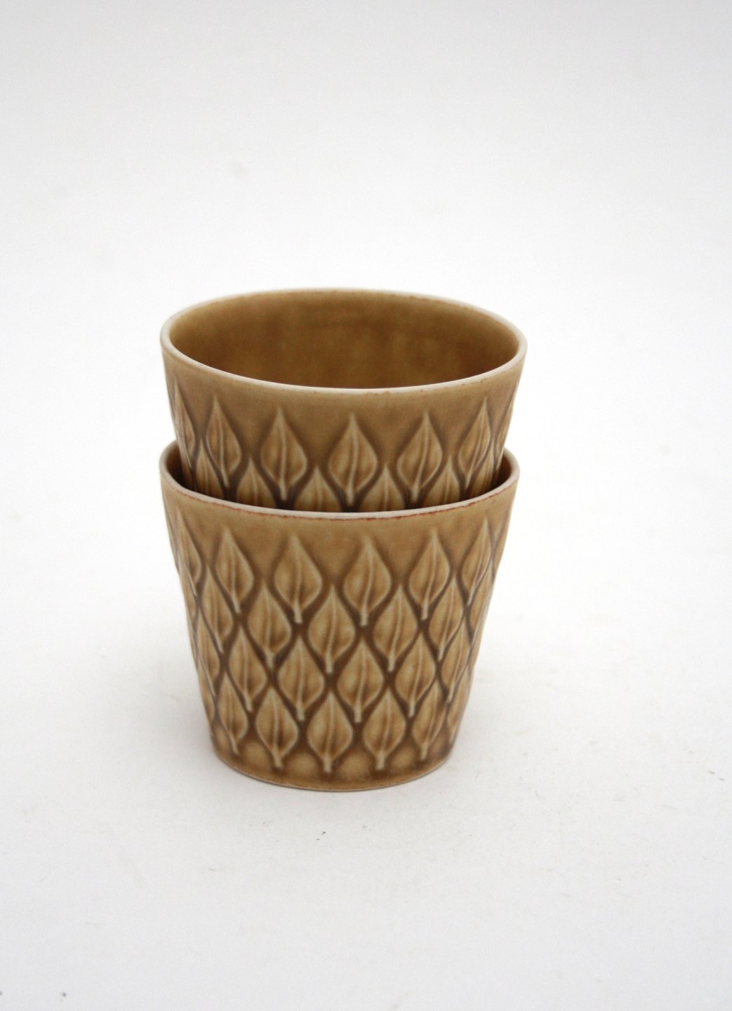 Bing & Grøndahl/Kronjyden, Relief designet af Jens Harald Quistgaard. Bæger. Nr. 370. Højde 6 cm. Øverste diameter 7,2 cm. Pris: SOLGT