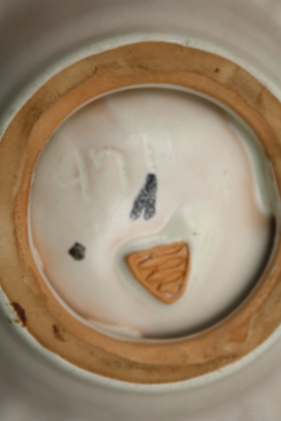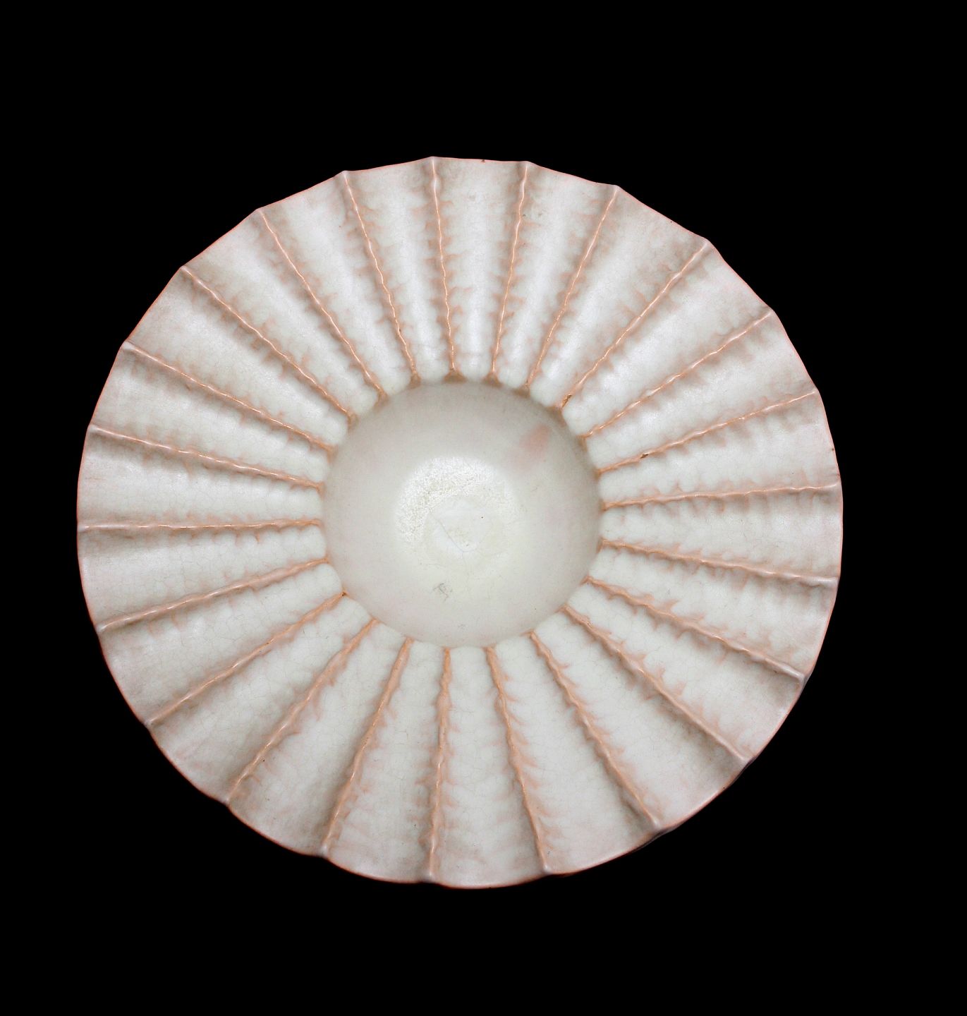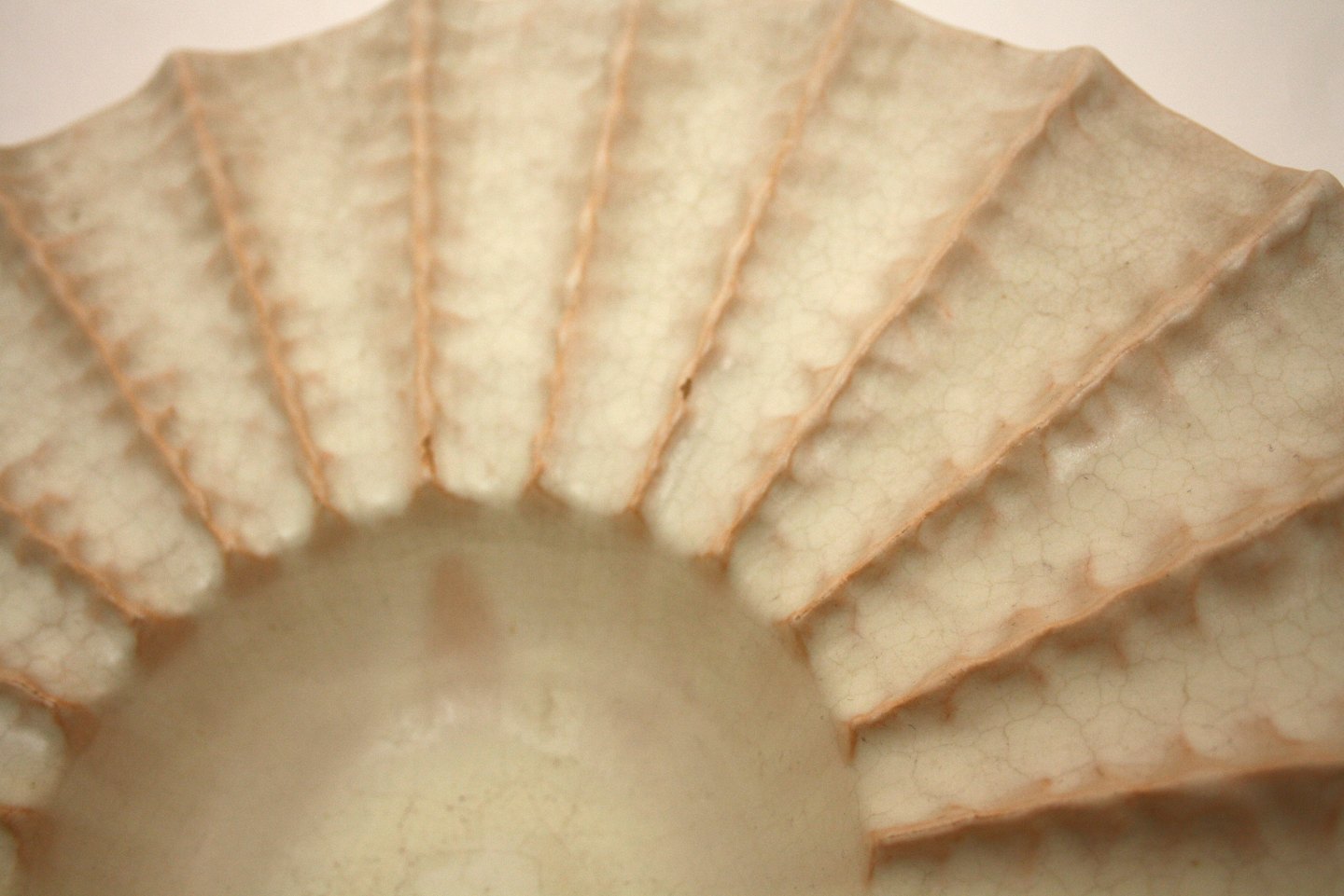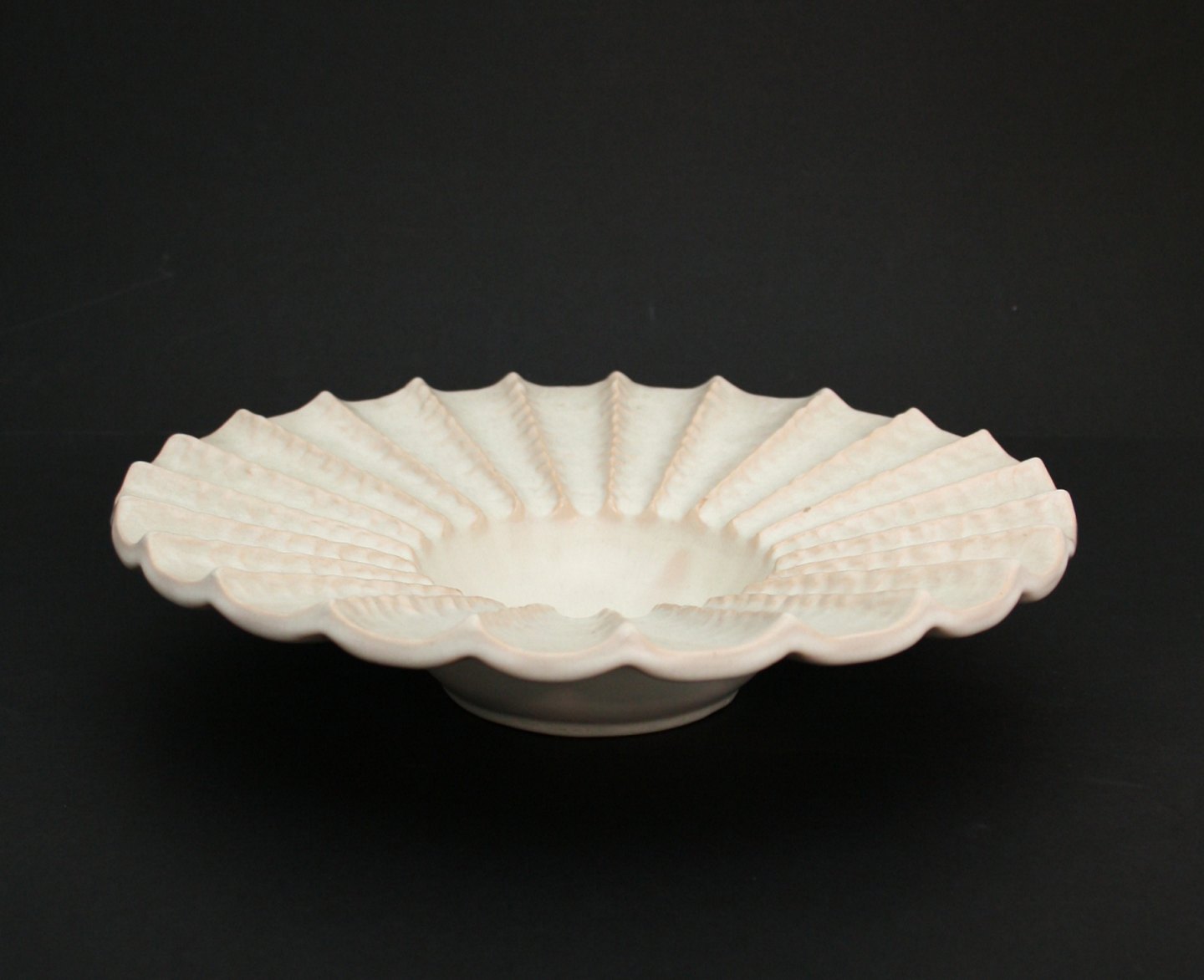 Michael Andersen, Bornholm, stort hvid matglaseret fad med riller. Formnr. 9711. 3 chip afslag i glasuren. Diameter 29,5 cm. Højde 7 cm. Pris: SOLGT