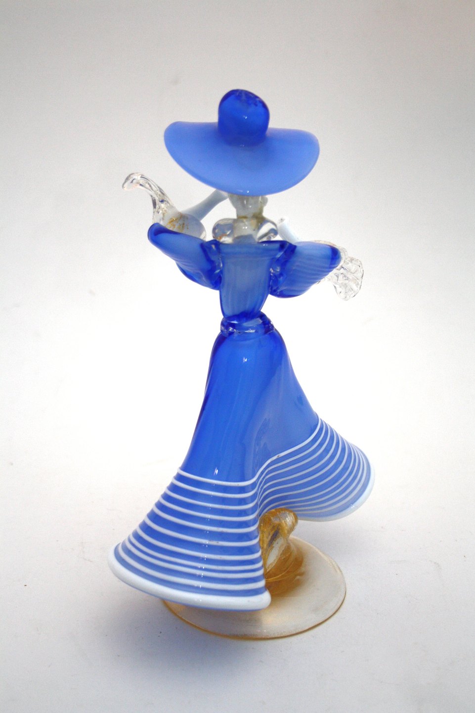 Murano, Italy, Kvinde i blå kjole og hat. Højde 25 cm. Flot stand. Pris: SOLGT
