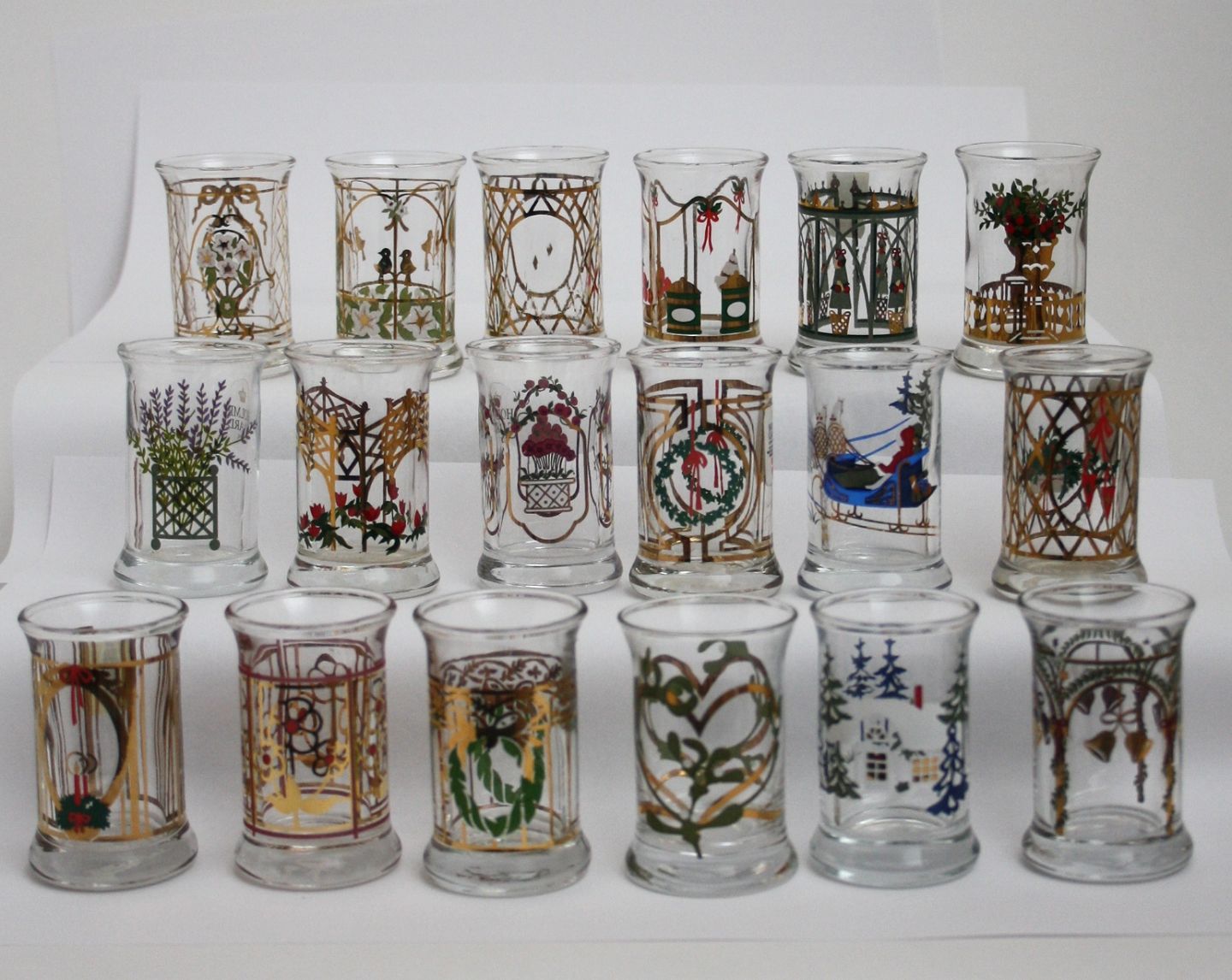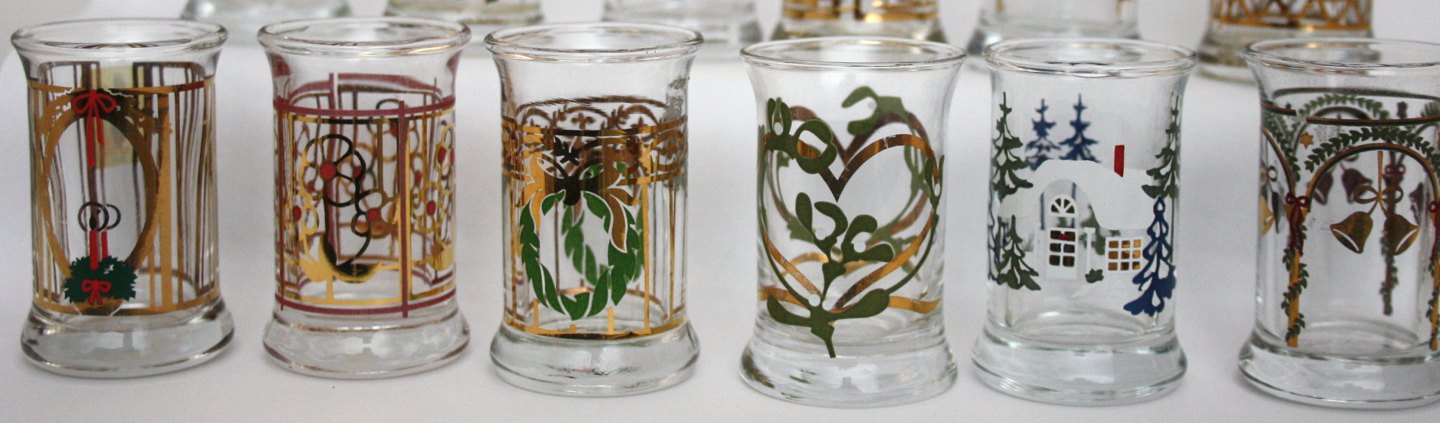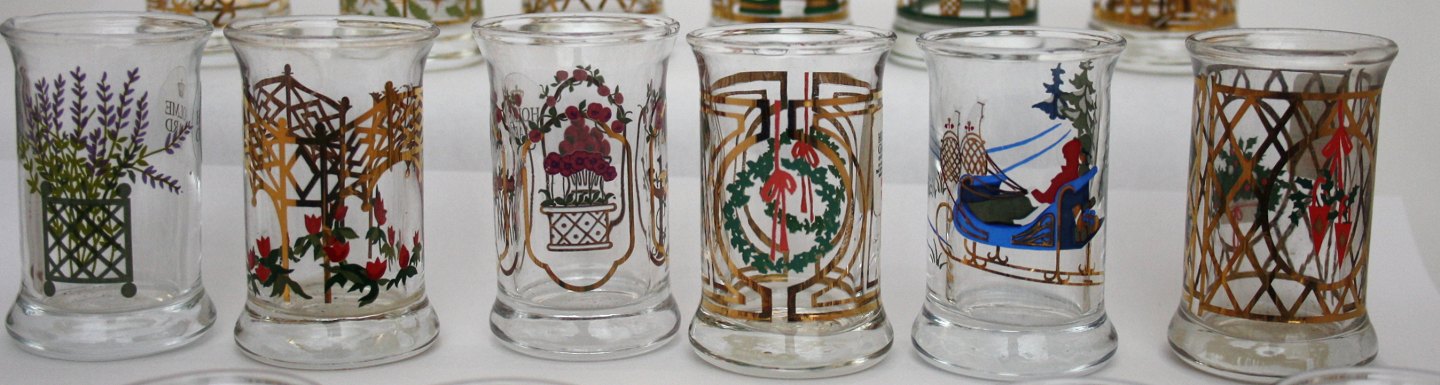 Holmegaard, Juledram glas der hører til julekaraflerne. De fleste af årene er der udgivet 2 forskellige glas pr. år. Der er ikke foto af alle. Pris: 50 kr. stk.