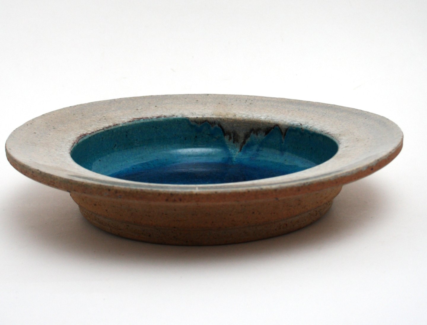 Kähler, stort rundt fad med blå glasur i bund og lys glasur på kant. Signeret HAK Nils. Diameter 31 cm. Højde 5,5 cm. God stand mindre afslag på kant, derfor nedsat. Der er sat beskyttelse kork propper i bunden. Pris: SOLGT