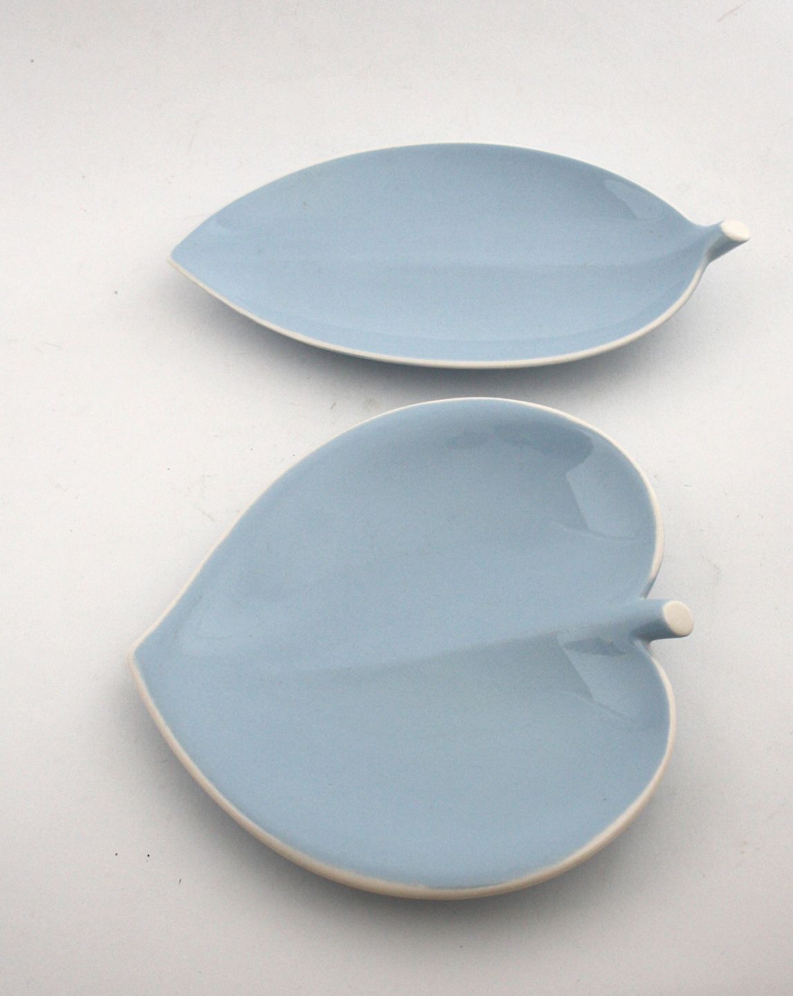 Hjerteformet blad assiet. Længde 18,5 cm. Bredde 18,5 cm. Fremstår med overfladekrakeleringer. Pris: SOLGT