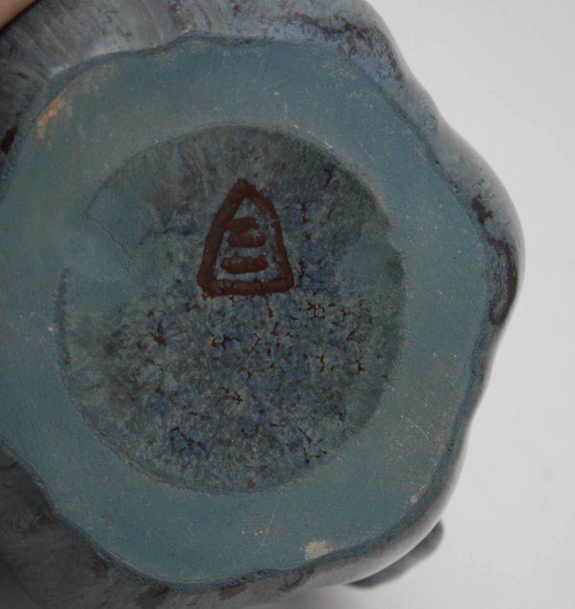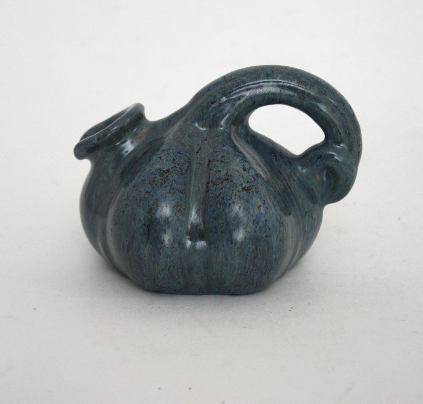 Michael Andersen, Bornholm, Græskarkande i blåmeleret glasur. Højde 8,5 cm. Længde 12,5 cm. Perfekt stand. Pris: SOLGT
