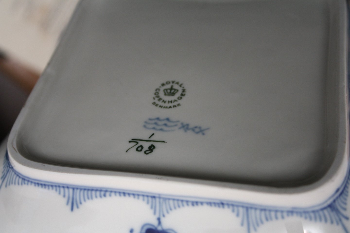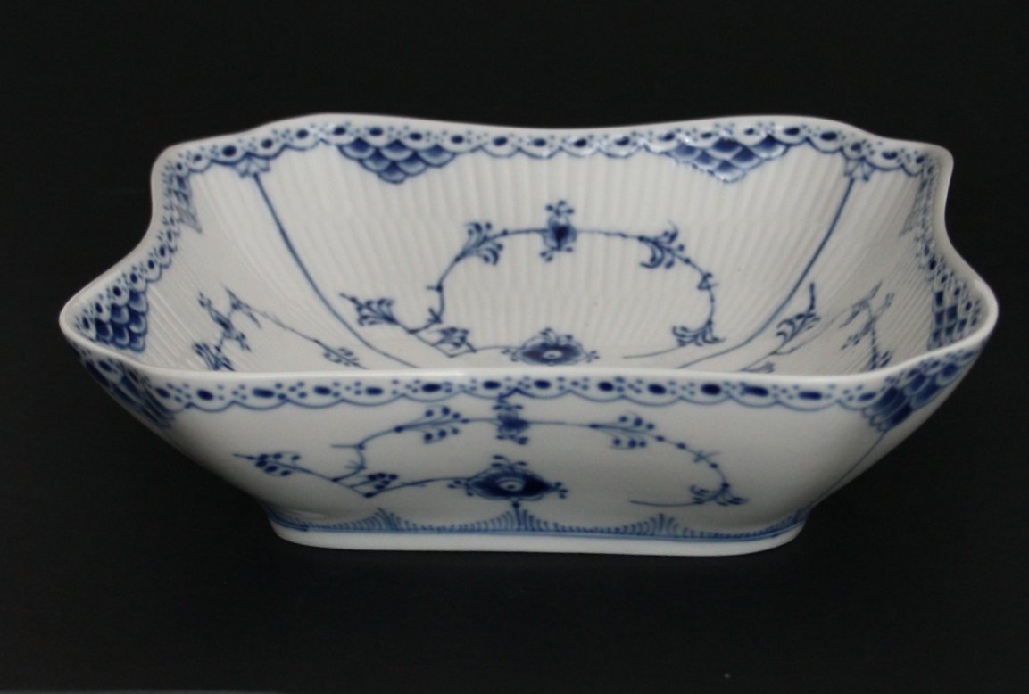 Royal Copenhagen, Musselmalet halvblonde, kartoffelskål. Formnr. 1-708. Højde 6 cm. 21,5 x 21,5 cm. I. sortering. Perfekt stand. Pris: SOLGT