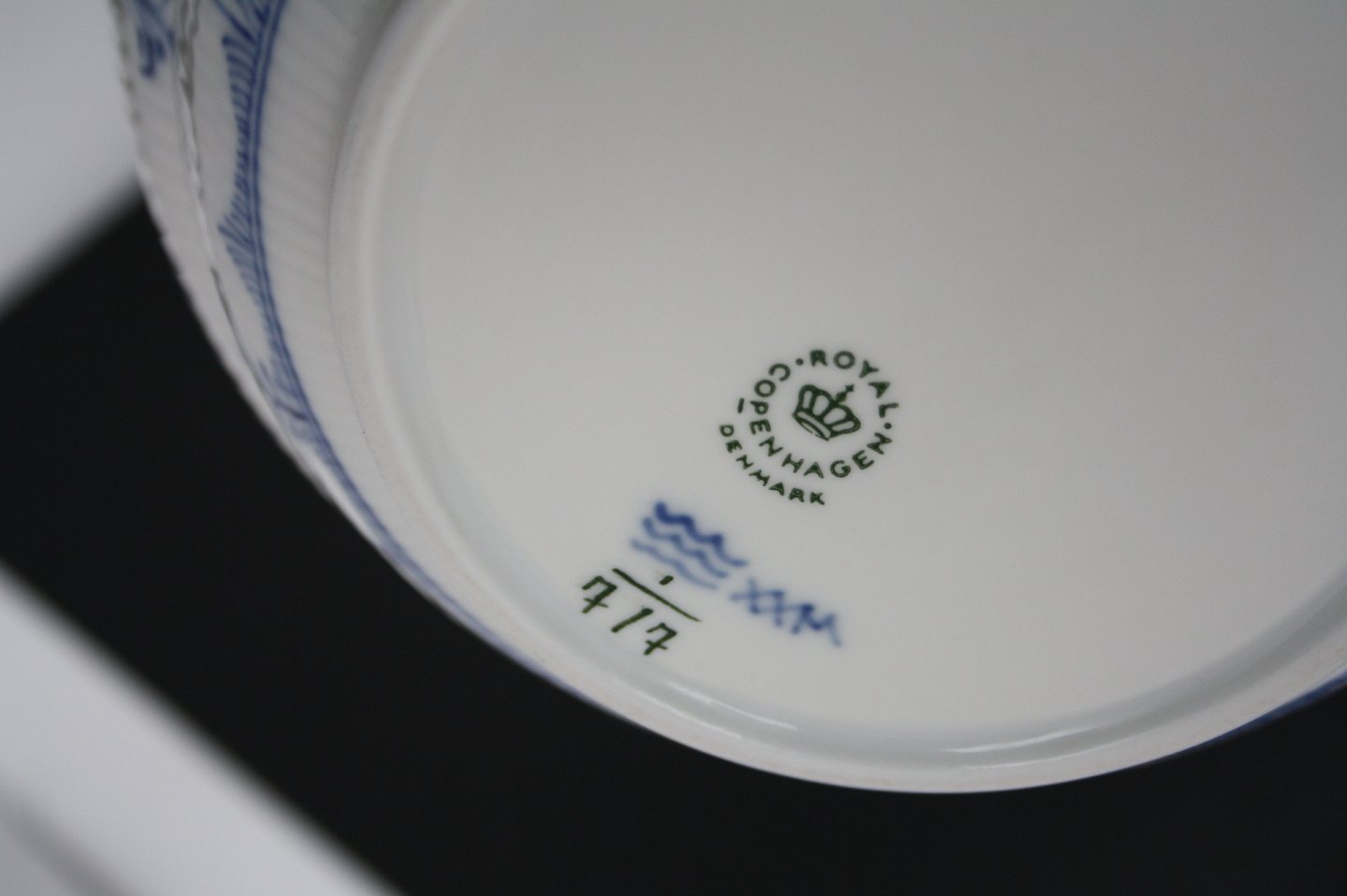 Royal Copenhagen, Musselmalet halvblonde, Skål, sjælden. Formnr. 1-717. Højde 7,5 cm. Diameter 19 cm. I. sortering. Perfekt stand. Pris: SOLGT