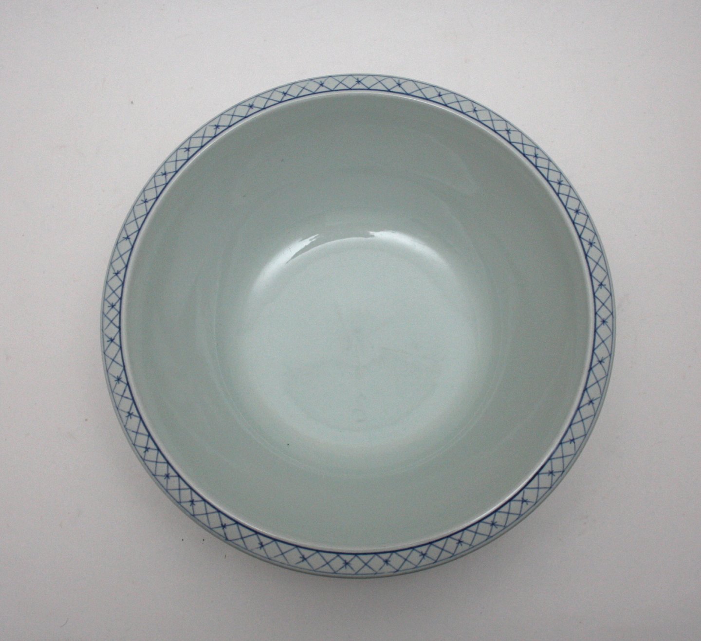 Aluminia, Ny Tranquebar lyseblå fajance med mørkeblå tulipan, ny form uden flettet bort. Håndmalet. Produceret fra 1959 til 1969. Rundt fad. Dekorationsnr. 11/2835. Diameter 23 cm. Højde 7 cm. Perfekt stand. Pris: solgt