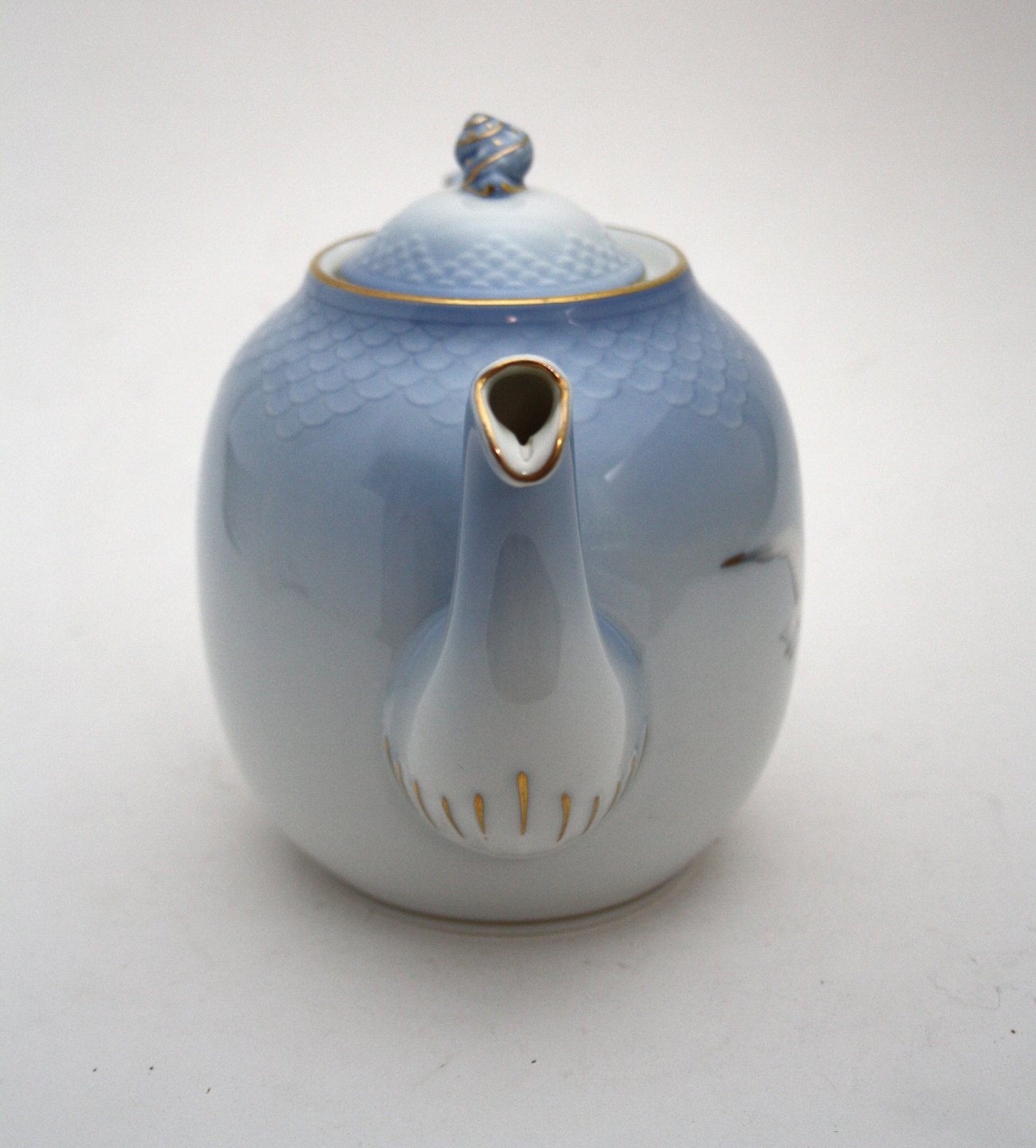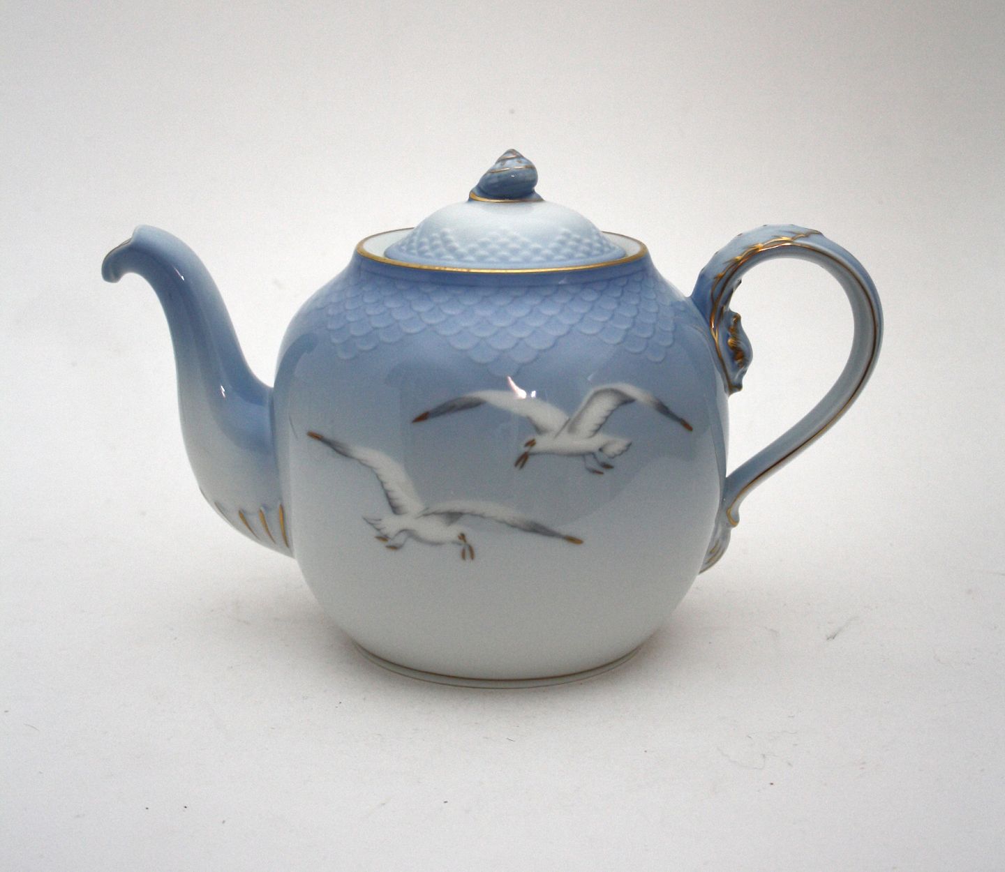 Bing & Grøndahl, Måge med guld. Stor tekande. Formnr. 238. Længde 25 cm. Højde 16,5 cm. II sortering. Pris: SOLGT