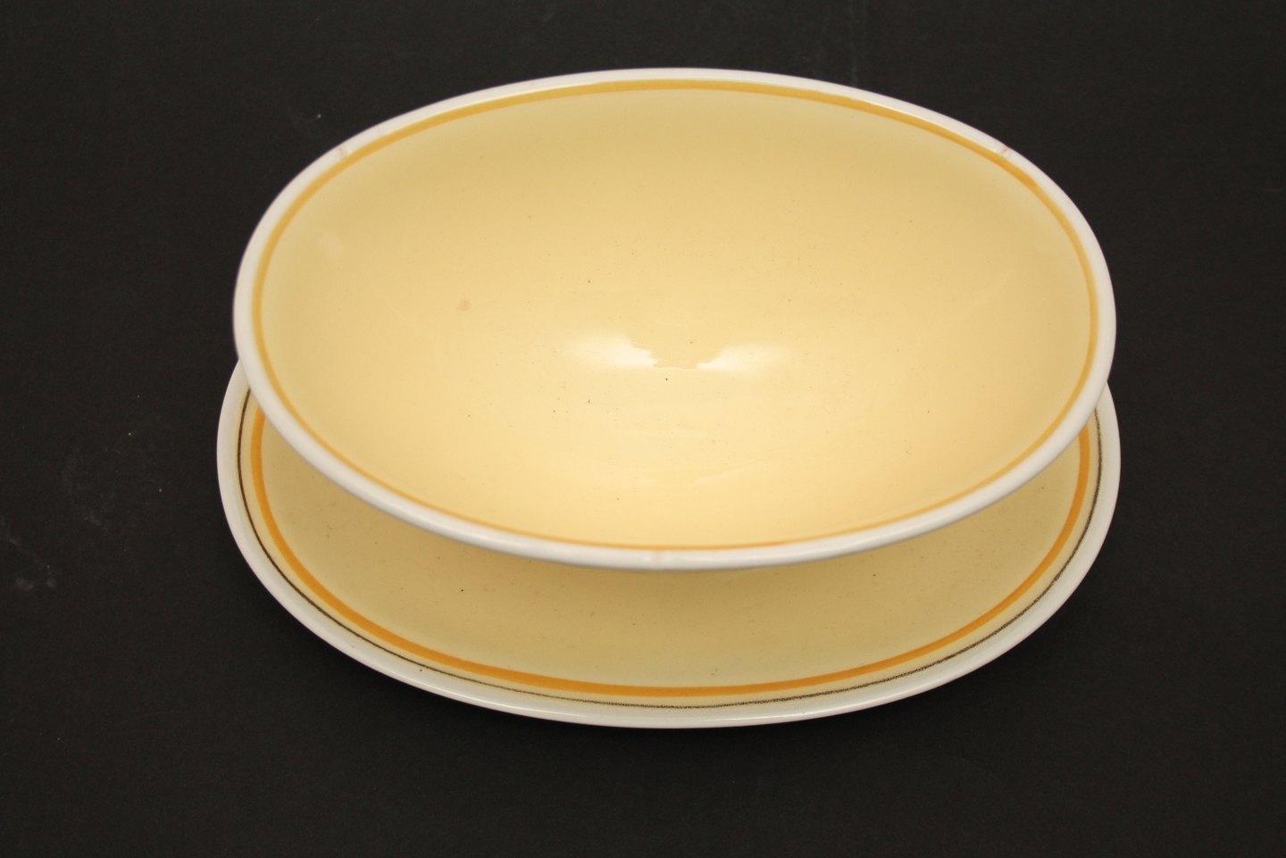 Aluminia, Elisabeth, luftmalet stel fra 1934-1965 designet af Thorkild Olsen. Sovseskål. Højde 9 cm. Længde 22 cm. Bredde 15 cm. God stand. Pris: 275 kr. stk. Lager: 1