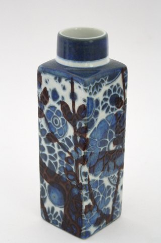 Holmegaard, Cascade vase designet af Per Lütken i 1970. Mundblæst opalhvid glas med indlagte skår i røde og orange farver. Ikke signeret. Højde 13,8 cm. Diameter 10 cm. Pris: SOLGT