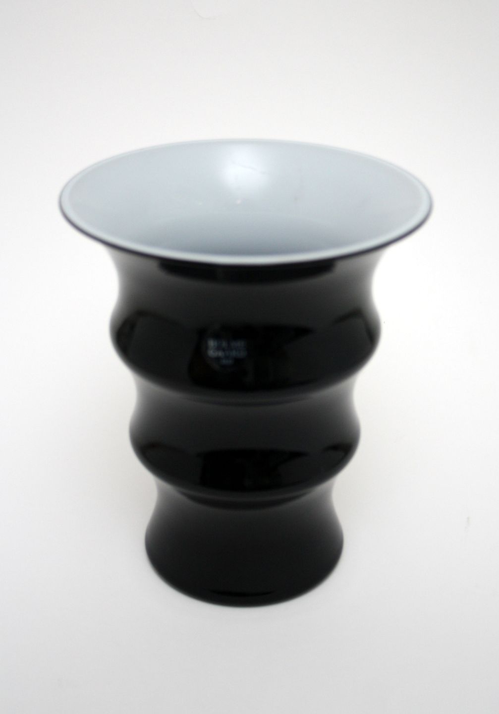 Holmegaard, Karen Blixen sort vase, opalhvid indvendig, designet af Anja Kjær fra 2000. Højde 17 cm. Diameter 14,5 cm. Pris: SOLGT