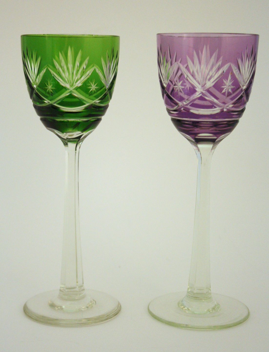 Bøhmisk krystal, Vinglas. Slebet kumme og stilk. Højde 20,5 cm. Pris: 225 kr. stk. Grøn. Lager: SOLGT Violet. Lager: SOLGT I2