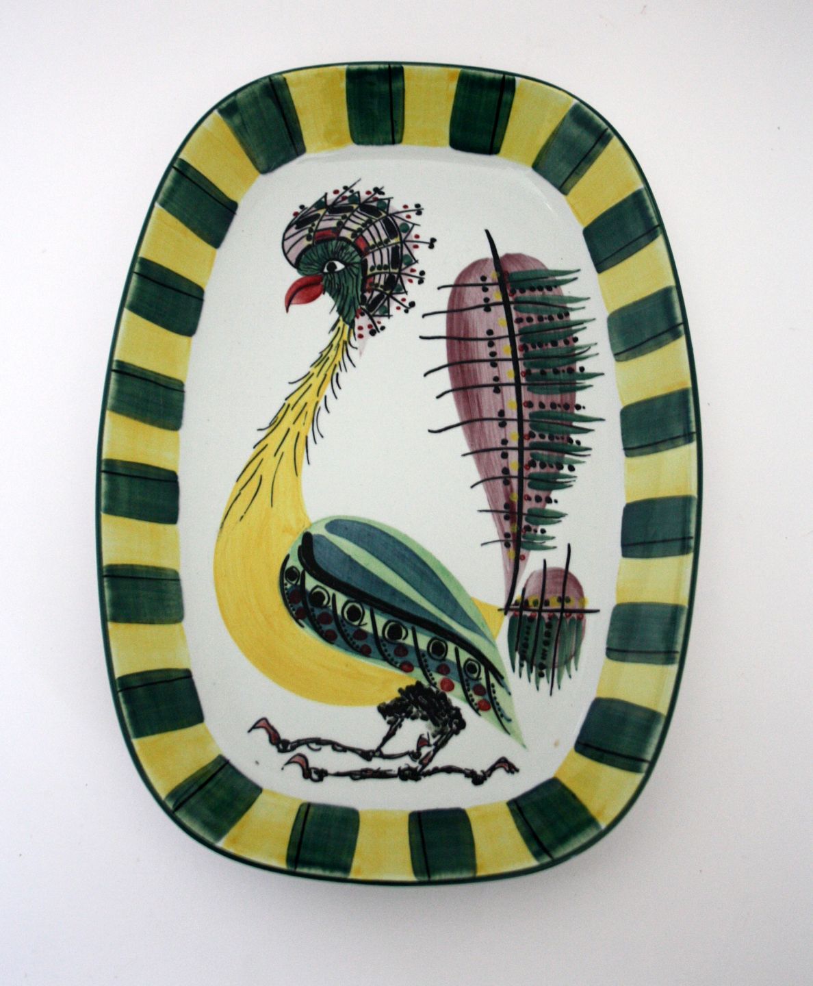Royal Copenhagen, Tenera, Ovalt fad med fugl designet af Inge-Lise Koefoed for Aluminia i 1958/59, senere produceret for Royal Copenhagen. Formnr. 119/2839. Længde 32 cm. Bredde 22,5 cm. Højde 3,5 cm. II. sortering. Flot stand. Pris: SOLGT