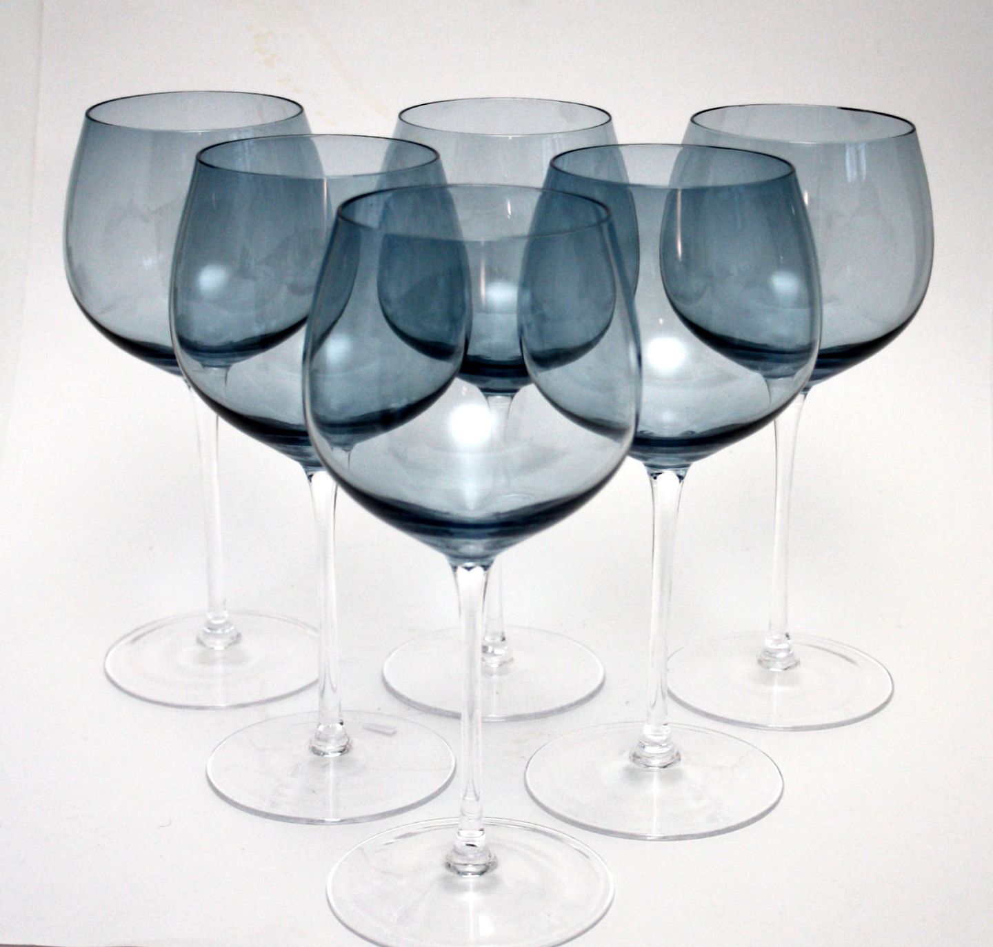 Labradorblå vinglas. Flot stand. Højde 21,5 cm. Øverste diameter 7,5 cm. Pris: SOLGT