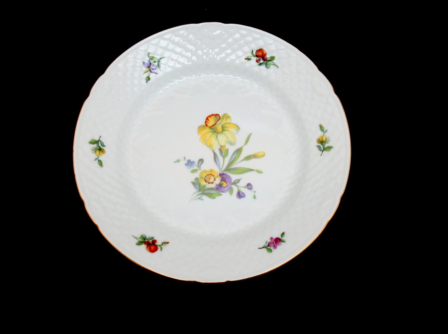 Bing & Grøndahl, Saksisk blomst. Stor kagetallerken. Nr. 28. Diameter 17,5 cm. Pris: 50 kr. stk. Lager: 8