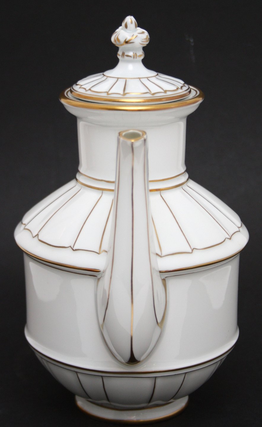 Bing & Grøndahl, Offenbach, kaffekande 26 cm. Hvidt kantet porcelæn med guldkant. Pris: 250 kr.