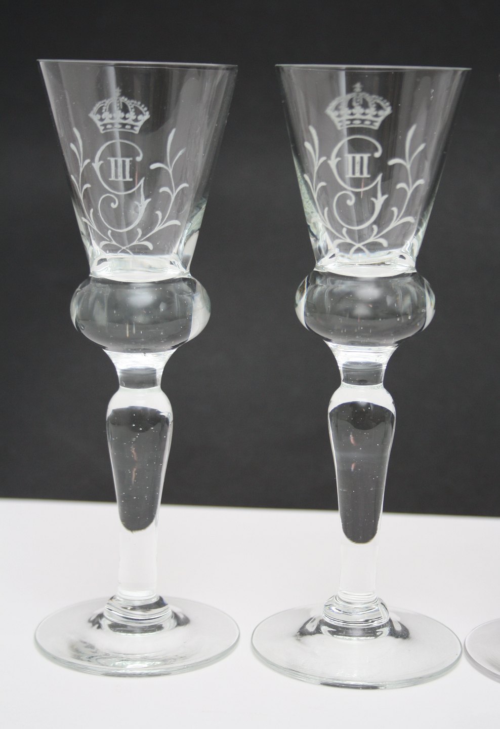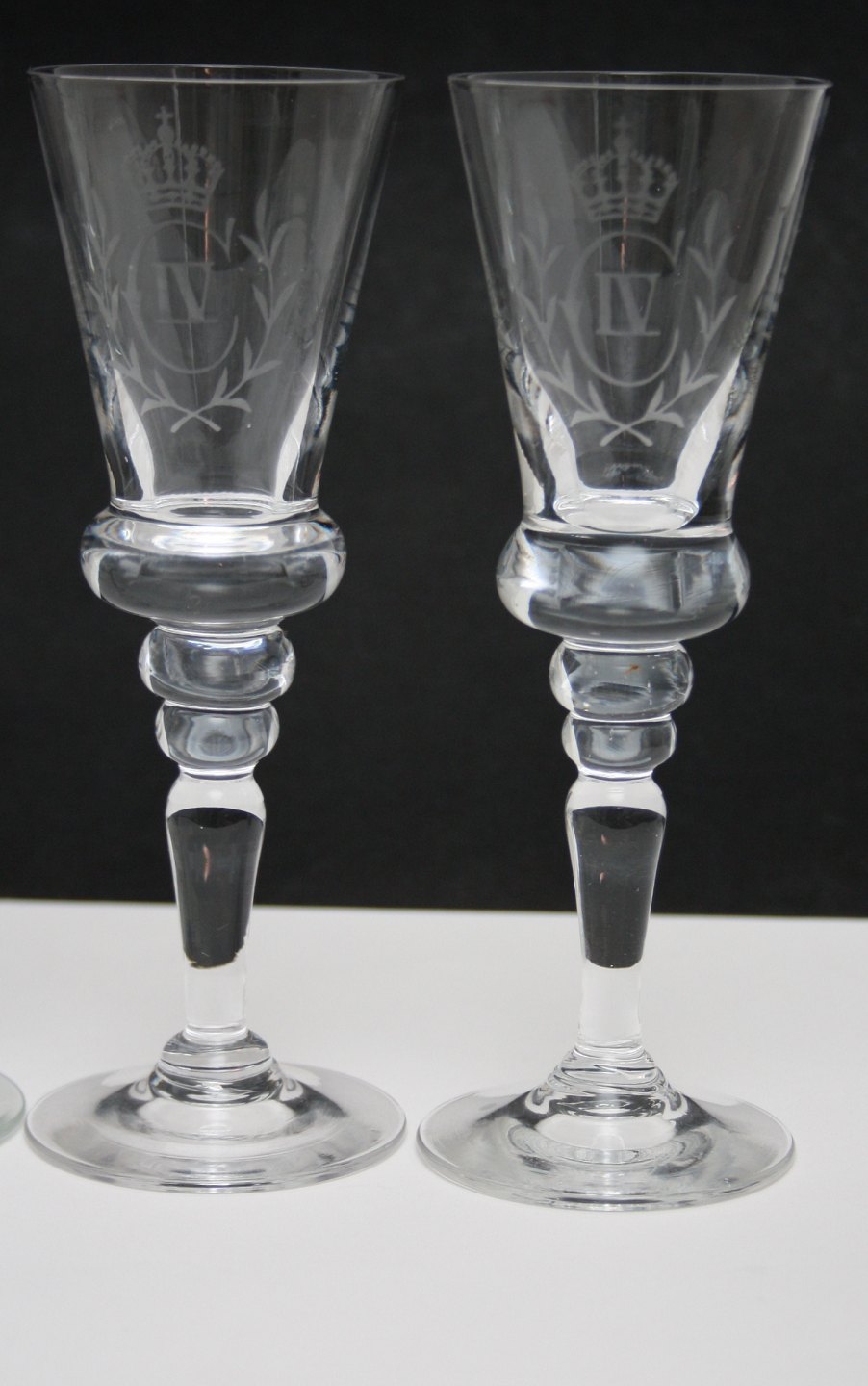 Snapseglas med Gustav III og Christian IV gravering.