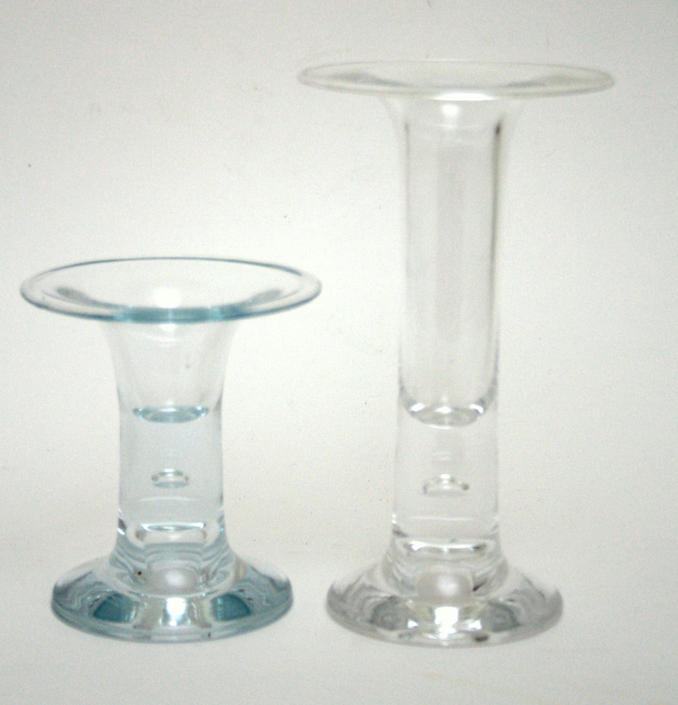 Holmegaard, Merkur vendbare lysestager/vaser med luftboble, designet af Michael Bang 1984.