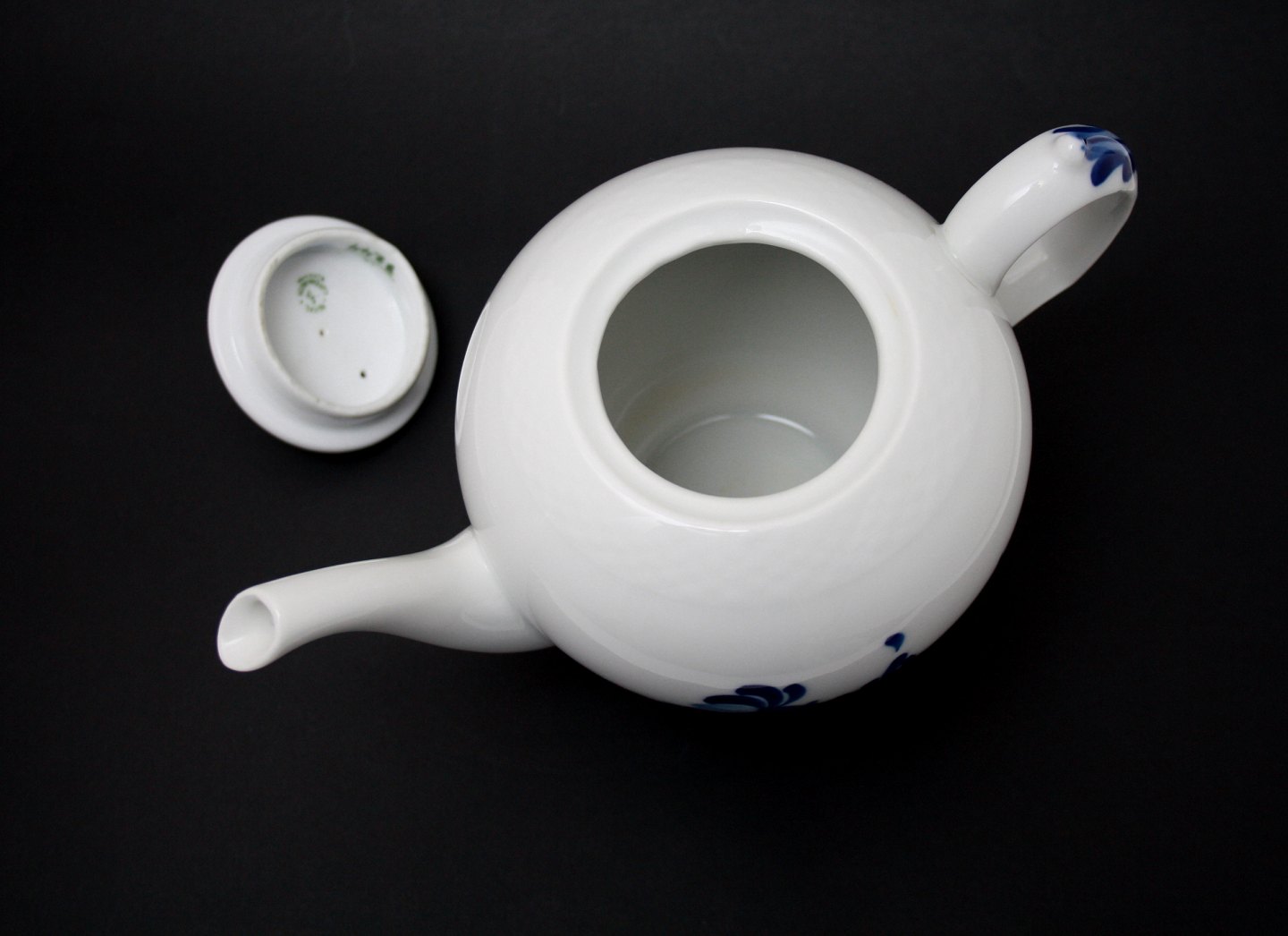 Royal Copenhagen, Blå Blomst flettet, Tekande. Nr. 10/8244. Højde 16 cm. Længde 24,5 cm. 1 liter. I. sortering. Flot stand. Pris: SOLGT