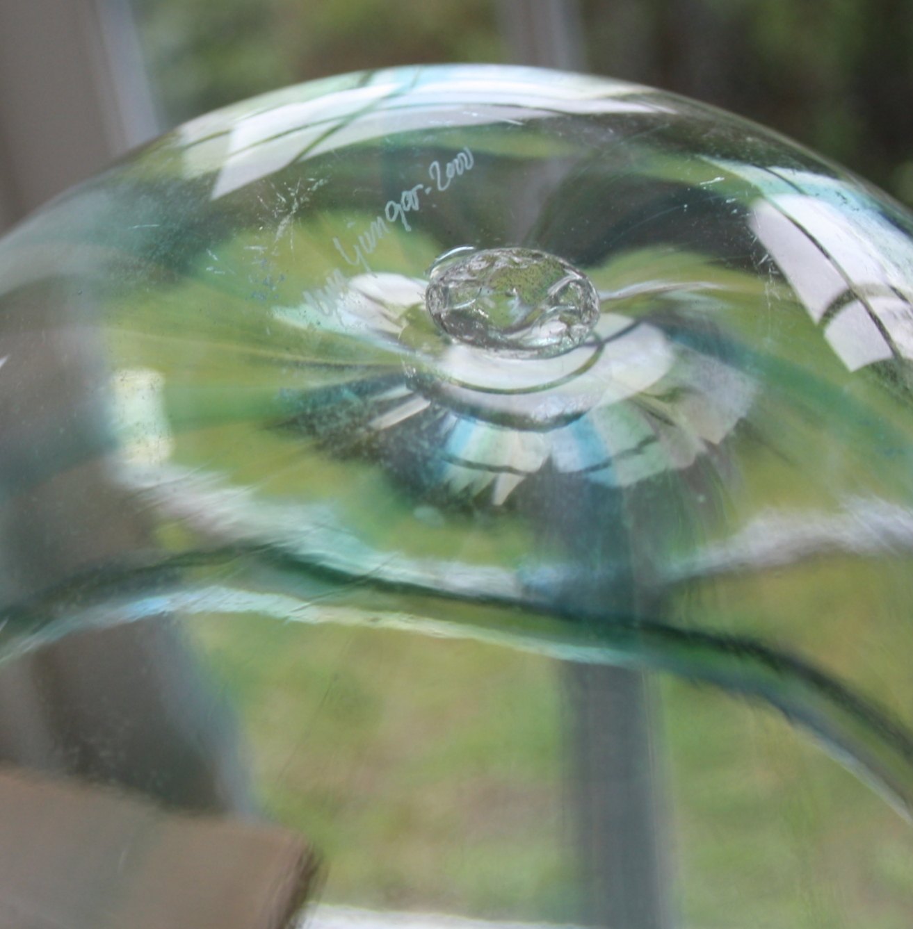 Lena Ljungar, Glasmagerne eget værksted Tåsinge sammen med Jesper Sødring. Skål i grønne nuancer. Signeret Lena Ljungar 2001. Diameter 20 cm. Højde 14,5 cm. Pris: SOLGT