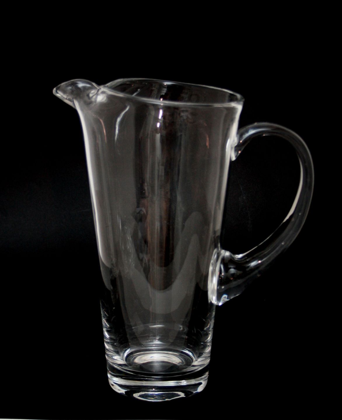Klar glaskande med isterning tud. Højde 25,5 cm. Øverste diameter ca 12 cm. Pæn stand. Pris: SOLGT
