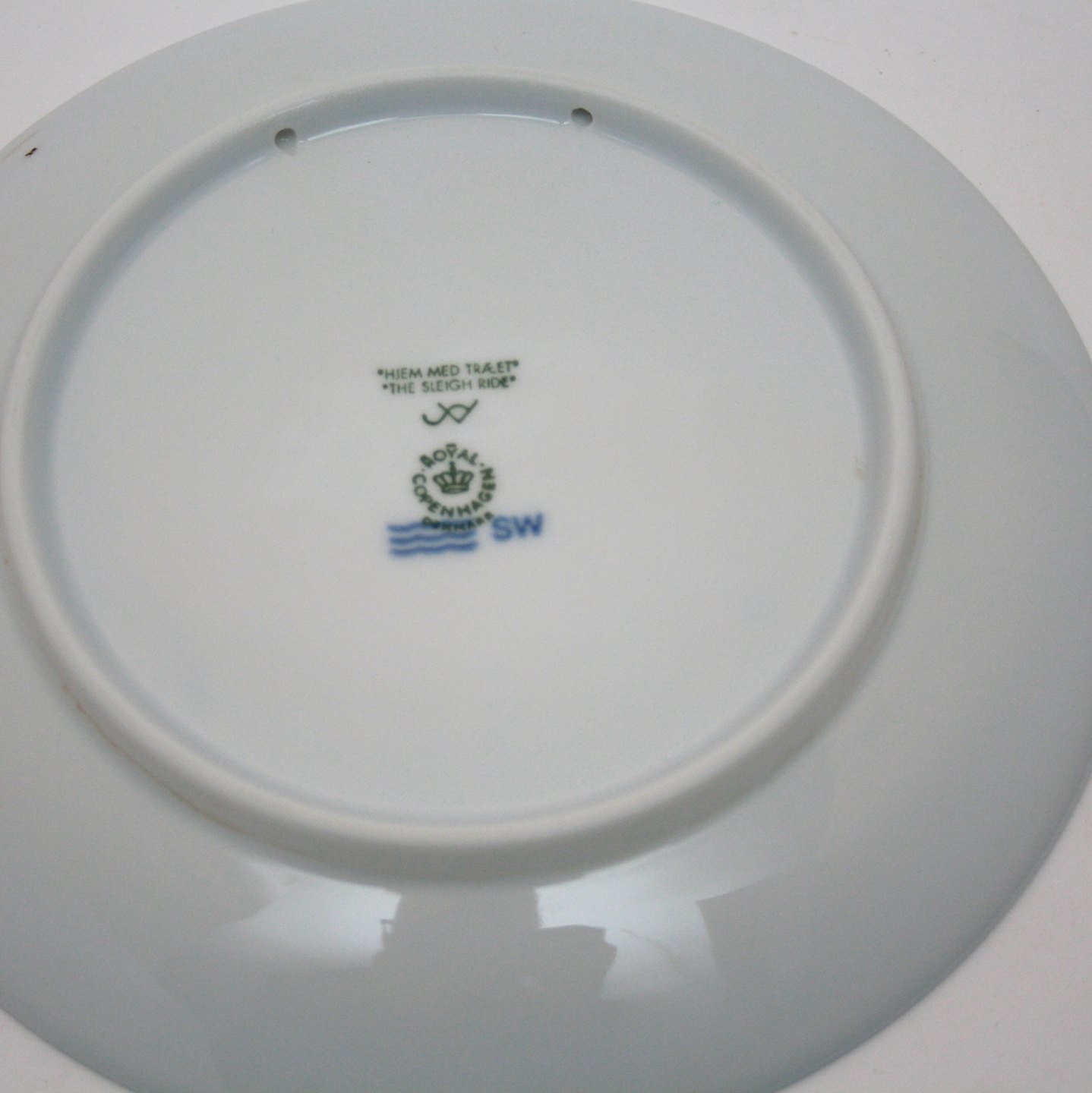Royal Copenhagen, Juleplatten 1999 "Hjem med træet" af Sven Vestergaard. Diameter 18 cm. 1. sortering. Pris: SOLGT