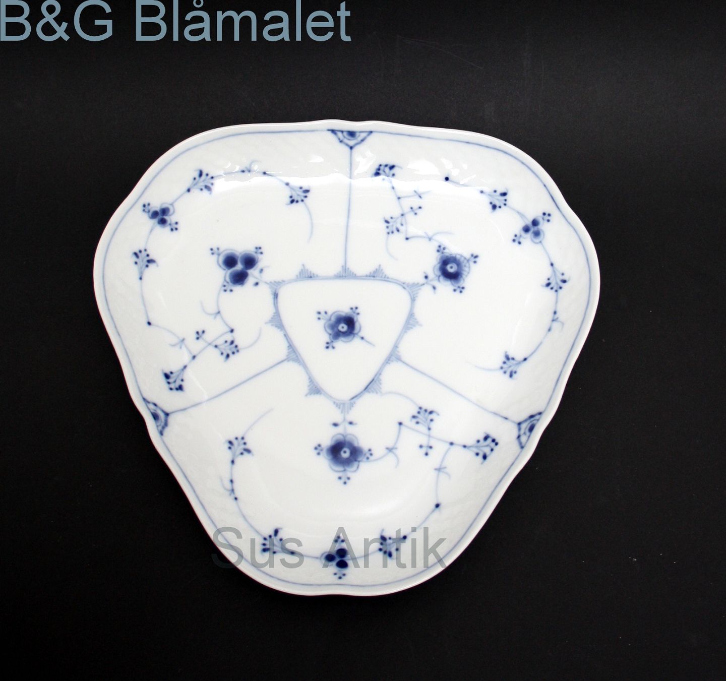 Bing og Grøndahl, Blåmalet (Musselmalet). Trekantet fad. Nr. 40. Produceret 1948-1952. 24 x 23 cm. II. sortering. Fin stand. Pris: SOLGT