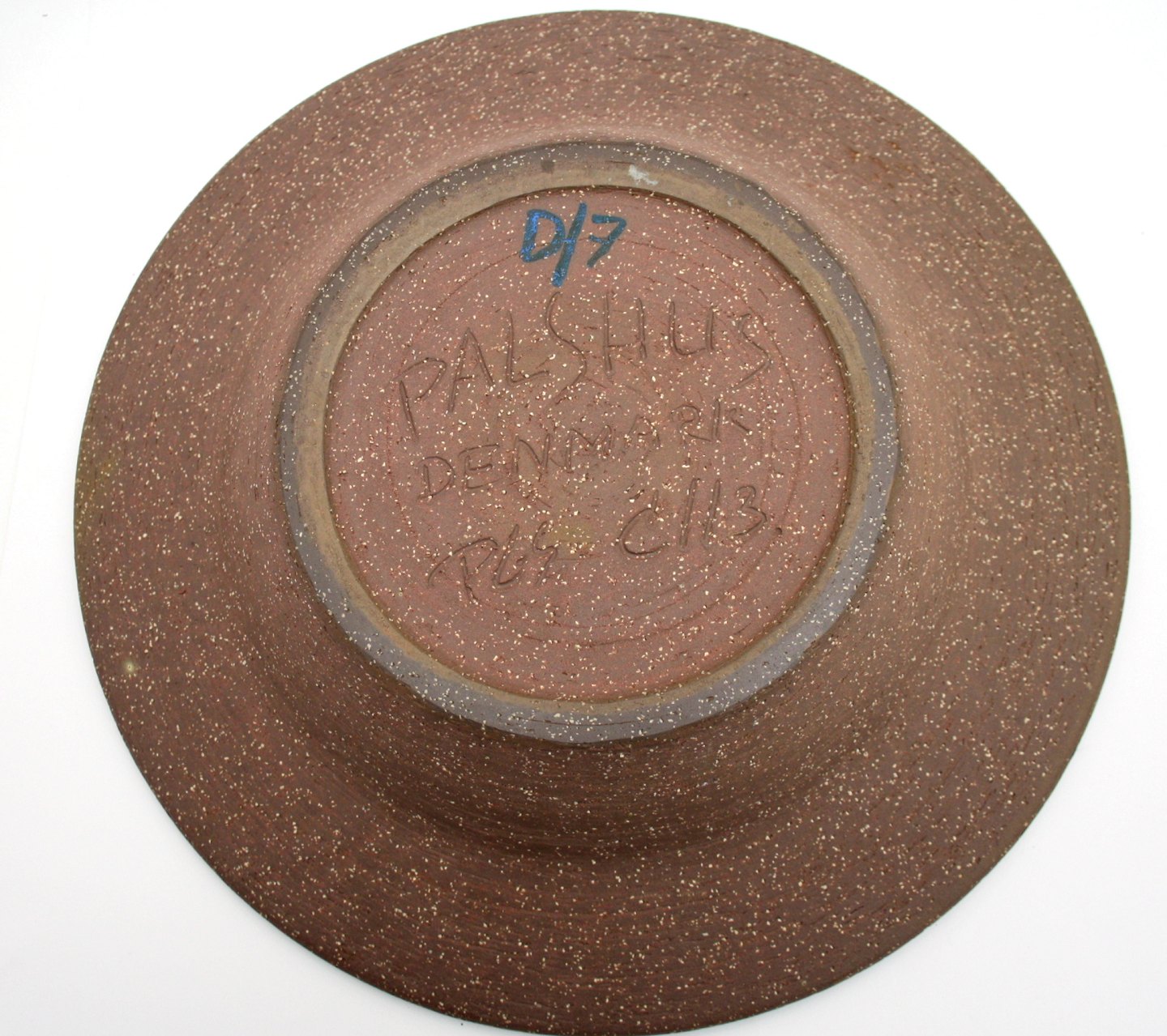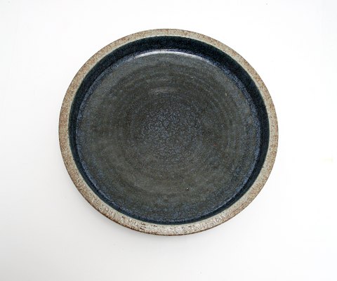 Palshus keramik, Stort fad med blålig mat glasur og bred uglaseret fane i chamotte stentøj. Fra 1960-70érne. Diameter 32,5 cm. Højde 7 cm. Signeret PL-S Denmark. Per Linnemann-Schmidt. Flot stand. Pris: 1.275 kr.