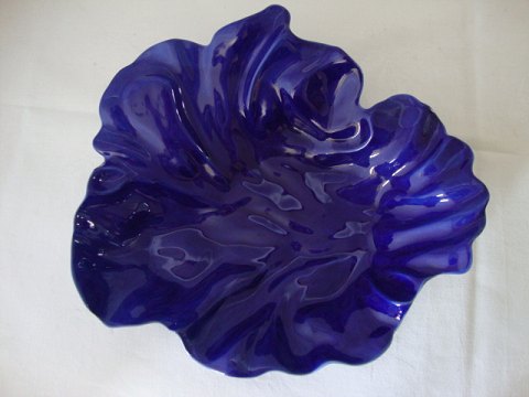 Søholm, Stor vase med reliefdekoration med blå glasur og rå stentøj. Designet af Einar Johansen. Formnr 3327. Højde 17 cm. Største diameter 20 cm. Flot stand. Pris: SOLGT