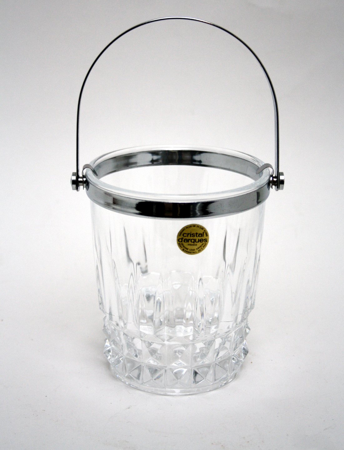 Cristal D'Arques, Frankrig, Isspand 24 % blykrystal med Pompadour slibning. Højde uden hank 13,5 cm. Diameter 11,3 cm. Pris: SOLGT