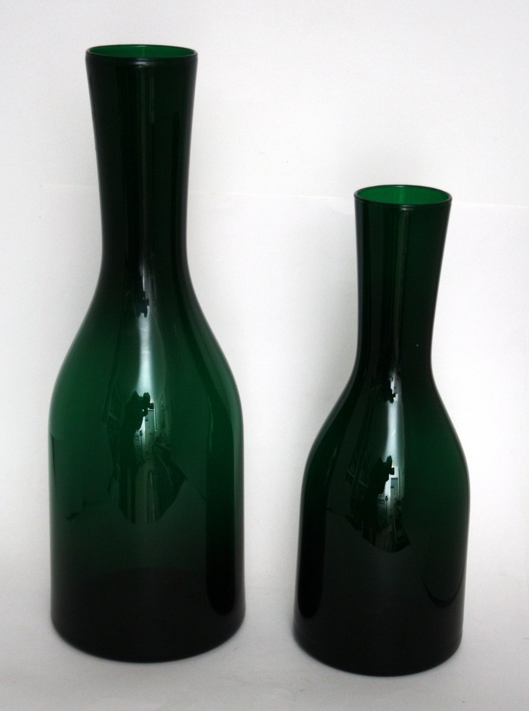 Kastrup/Holmegaard, Gulvaser i flaskegrønt (flaskevaser). Designet af Otto Brauer for Kastrup Glasværk i 1959 og produceret på Fyens Glasværk.