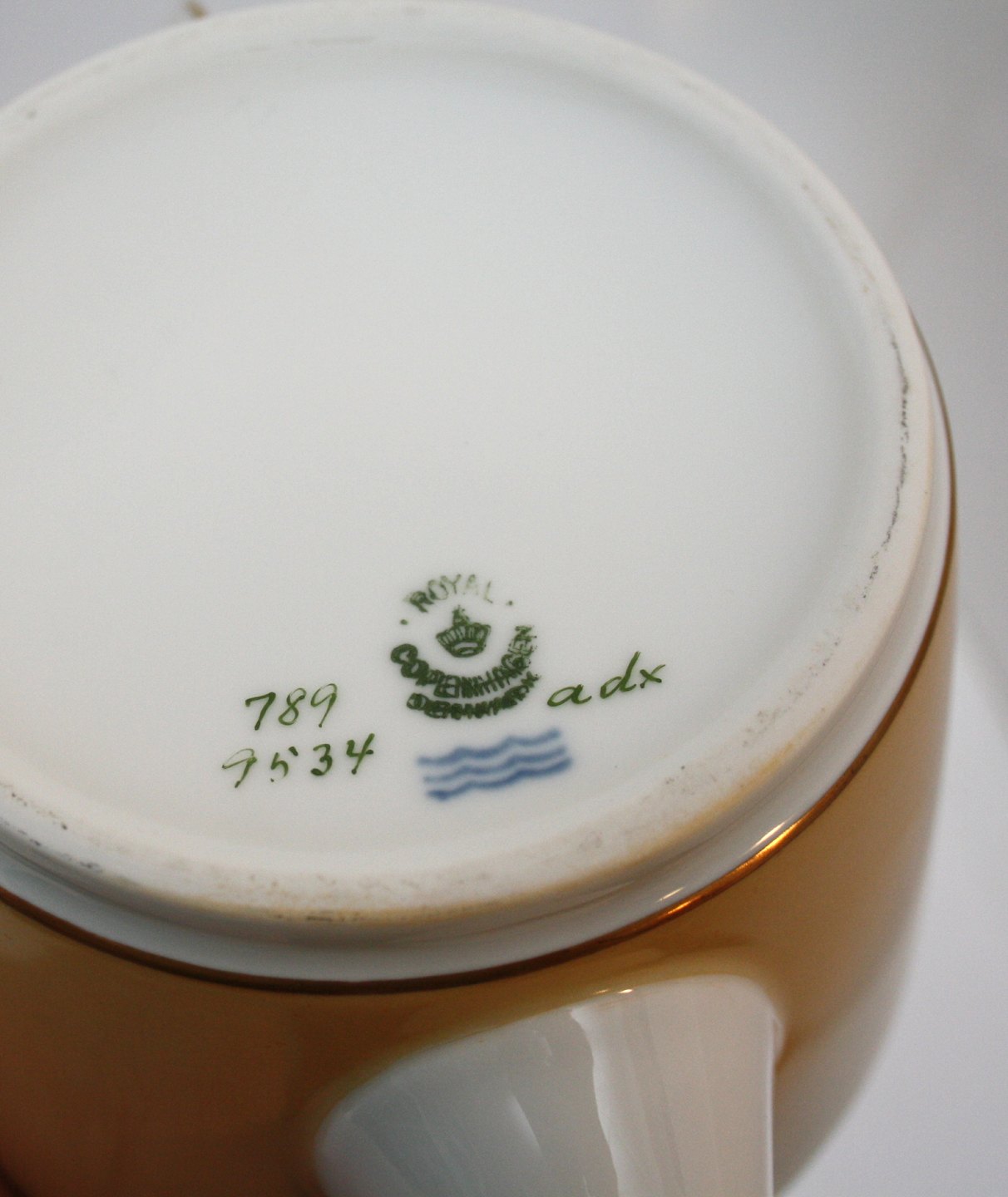 Royal Copenhagen, Bernstorff, Kaffekande. Designet af Thorkild Olsen. Dek nr. 789. Formnr. 9478. Højde 21 cm. Længde 23,5 cm. I. sortering. Pris: SOLGT