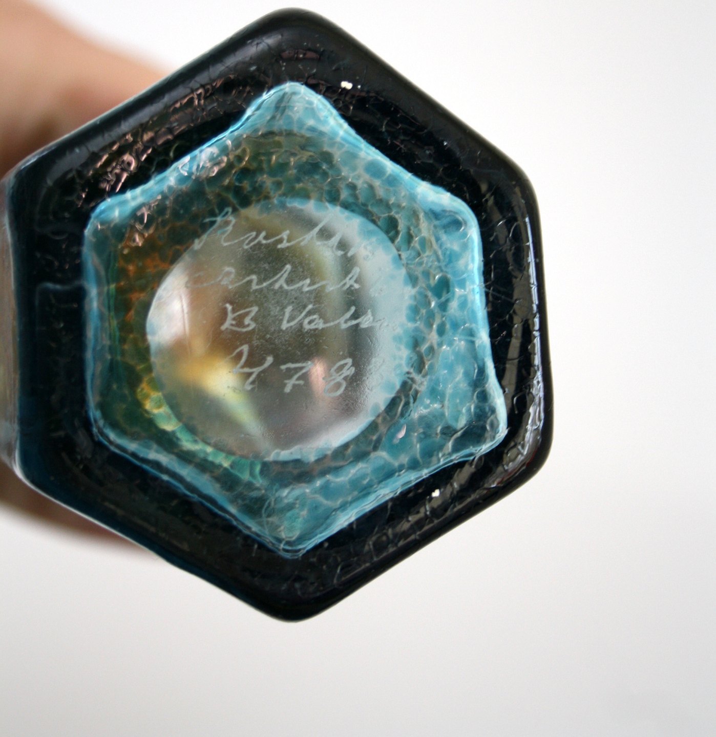 Kosta Boda, Sweden, Miniature flaske i gul og blå glas. Designet af Bertil Vallien. Højde 15,5 cm. Signeret Kosta Boda Artist Collection, B. Vallien 47839. Fin stand. Pris: SOLGT