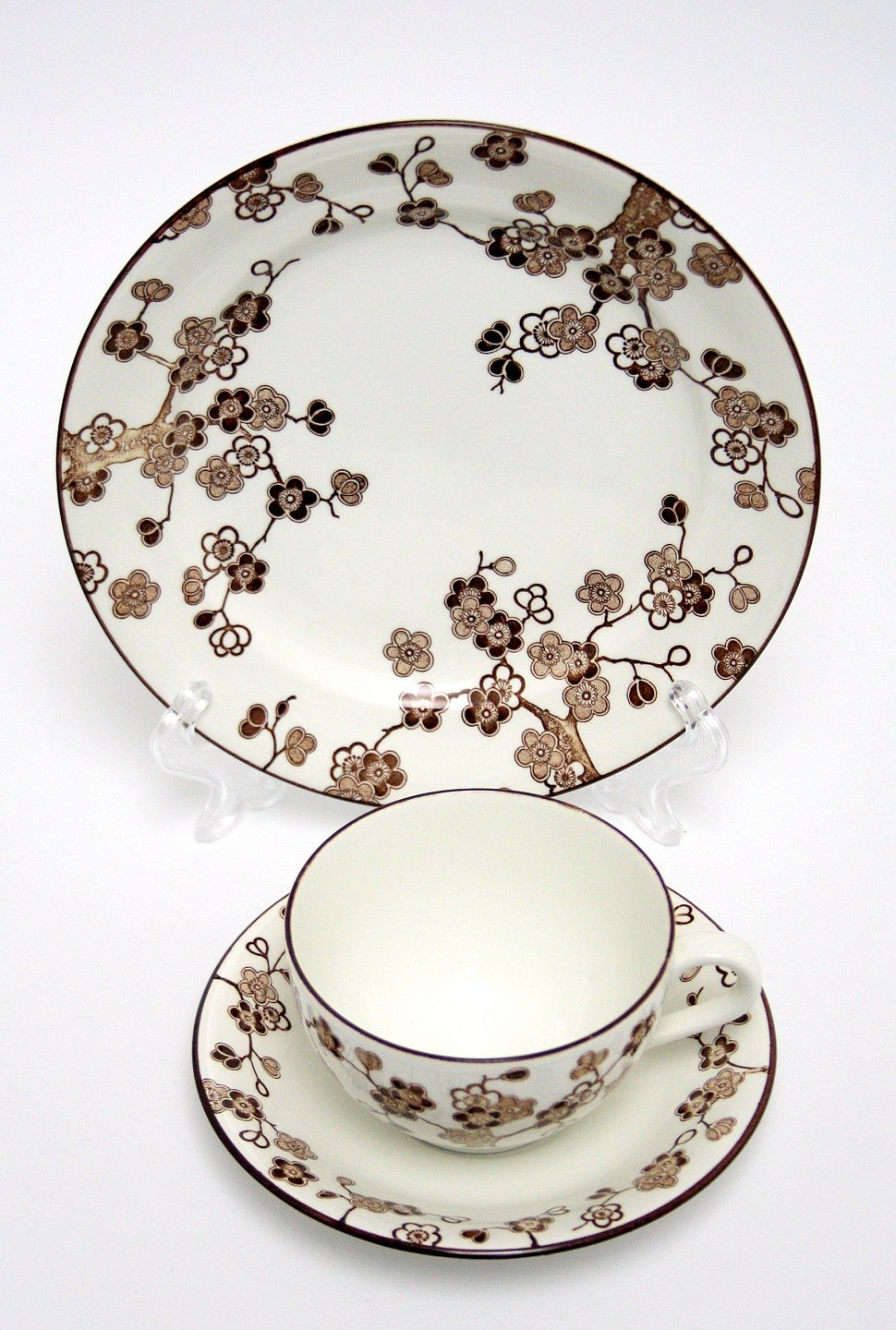 Rørstrand, Japonica designet af Jackie Lynd. Mærke VDN F555, Japonica, Rørstrand Sweden. Kop. Højde 5 cm. Diameter 8,5 cm. Underkop Diameter 13 cm. Pris: SOLGT Ekstra underkop. Pris: SOLGT Kagetallerken. Diameter 17,5 cm. Pris: SOLGT