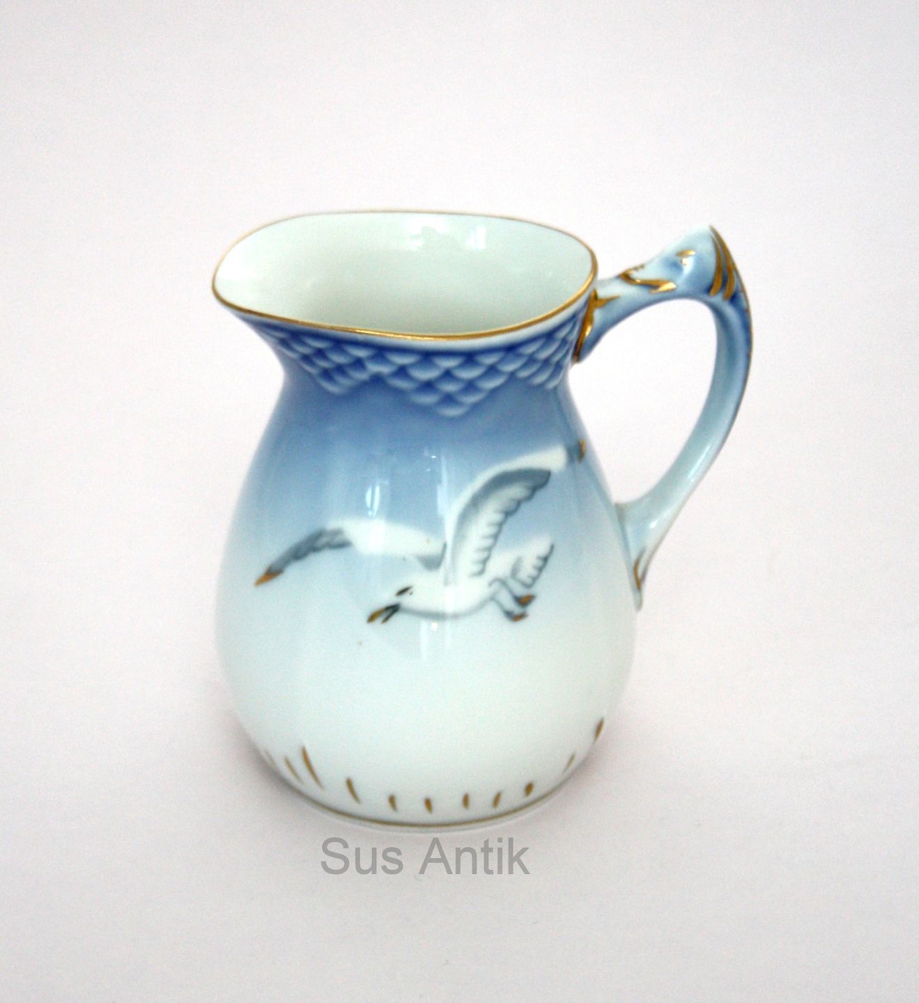 Bing & Grøndahl, Måge med guld. Flødekande. Nr. 85B. Højde 9 cm. Pris: SOLGT