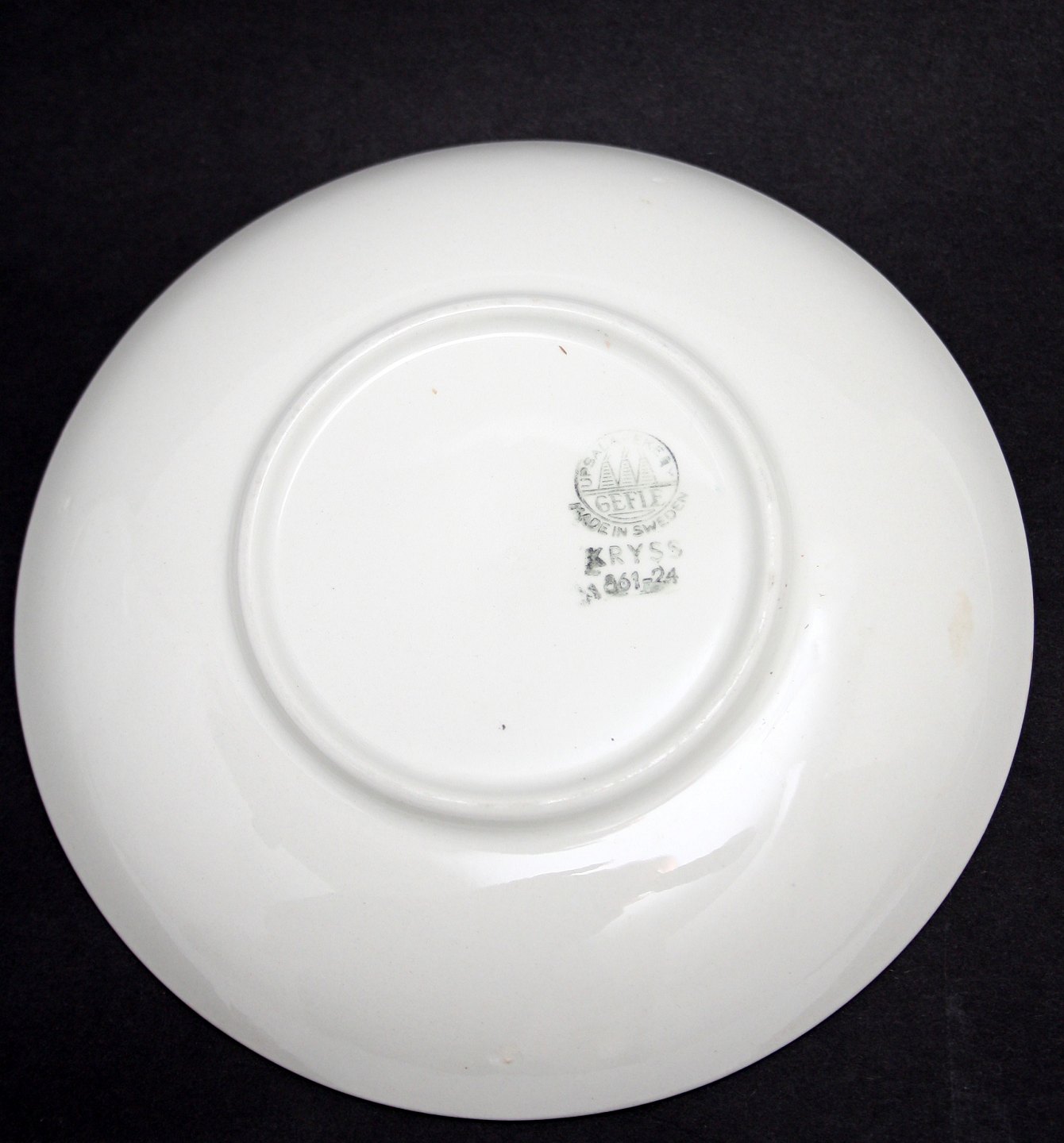 Uppsala-Ekeby, Gefle, Sweden, Kryss, Tekop med underkop. Designet af Helmer Ringström og produceret i perioden 1957-1964. Højde 7,5 cm. Diameter 9,5 cm. Underkop diameter 15,5 cm. Pris: SOLGT