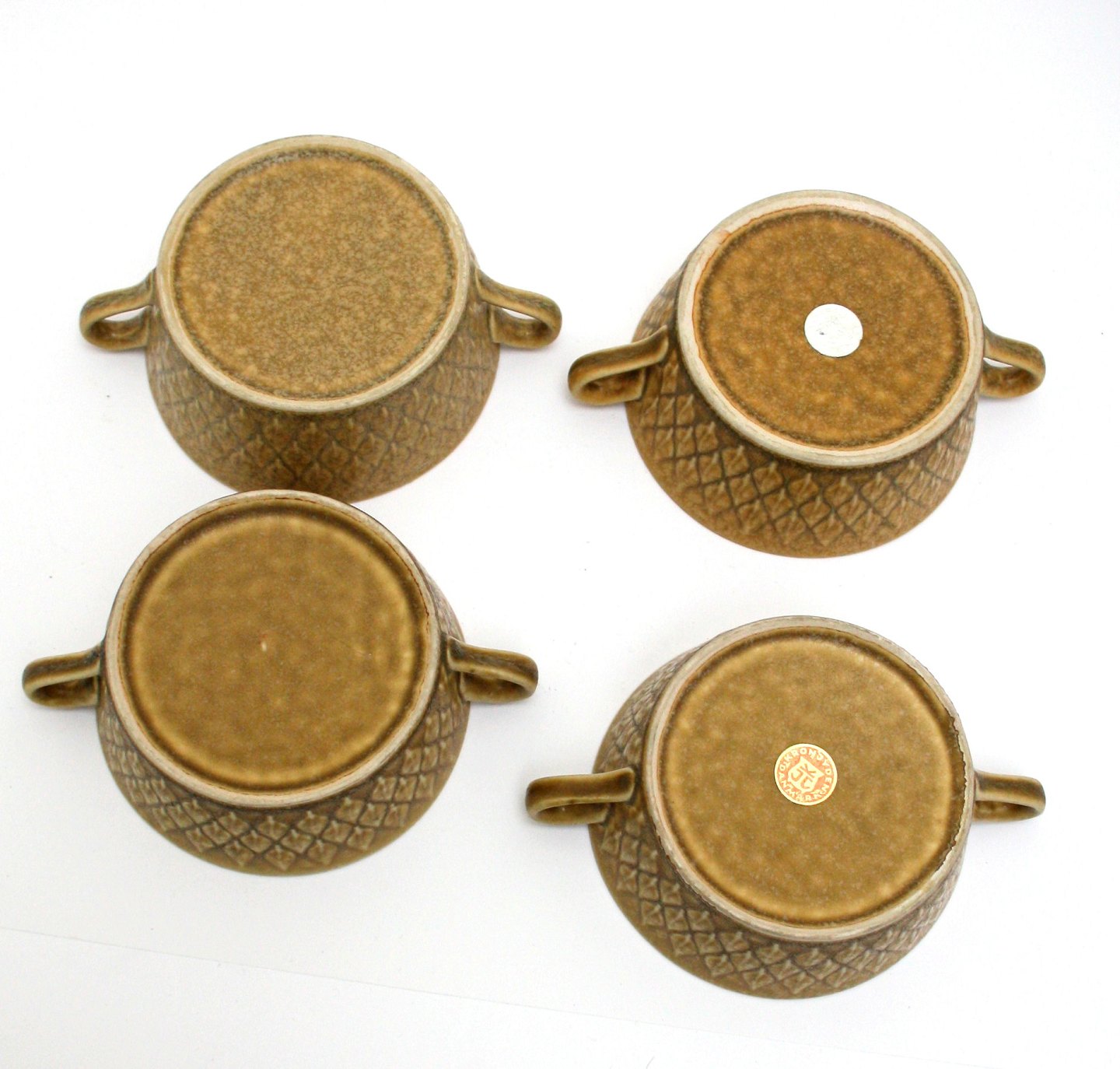 Kronjyden/Nissen/Bing & Grøndahl, Relief designet af Jens H Quistgaard 1958. Boullionkop med låg og 2 ører. Højde uden låg 5 cm. Diameter 11,5 cm. Pris: SOLGT