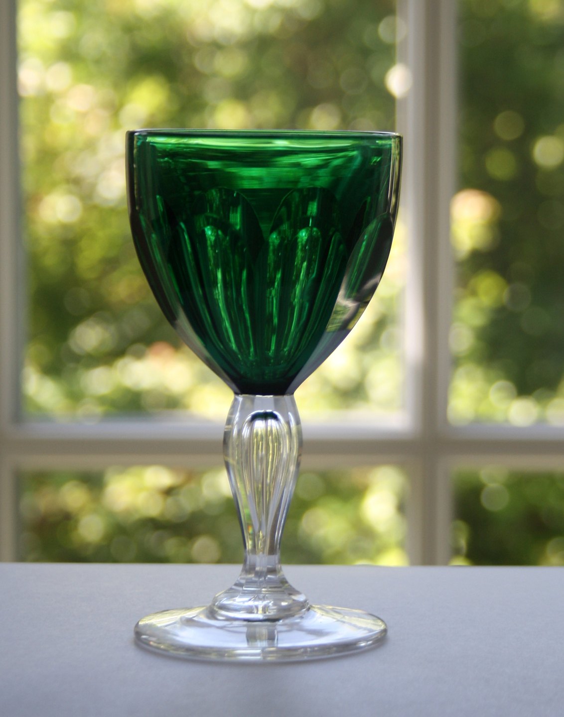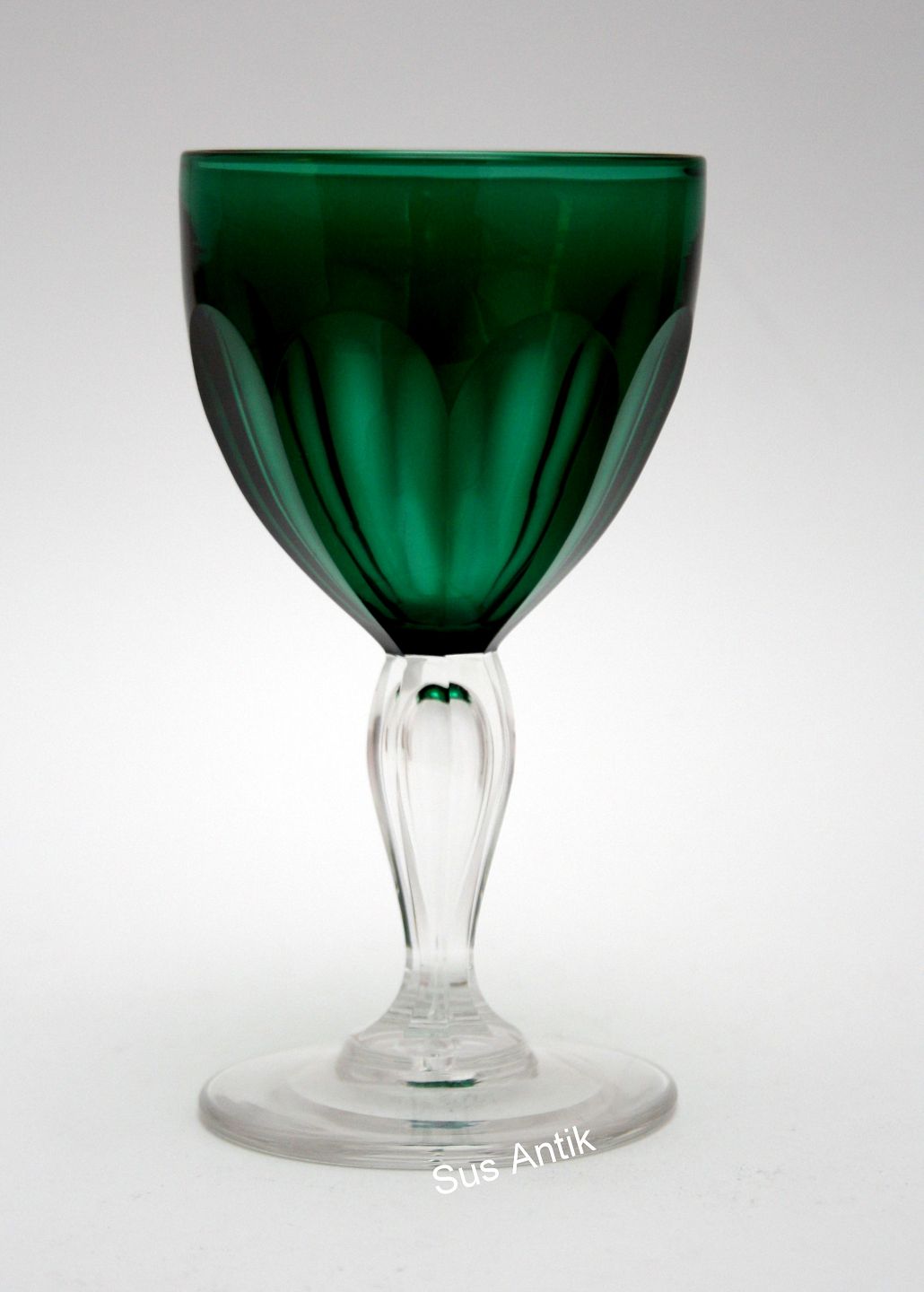 Val saint Lambert på licens fra Holmegaard, Paul krystalglas med store facetslibninger på kumme og stilk med omvendt dråbe.