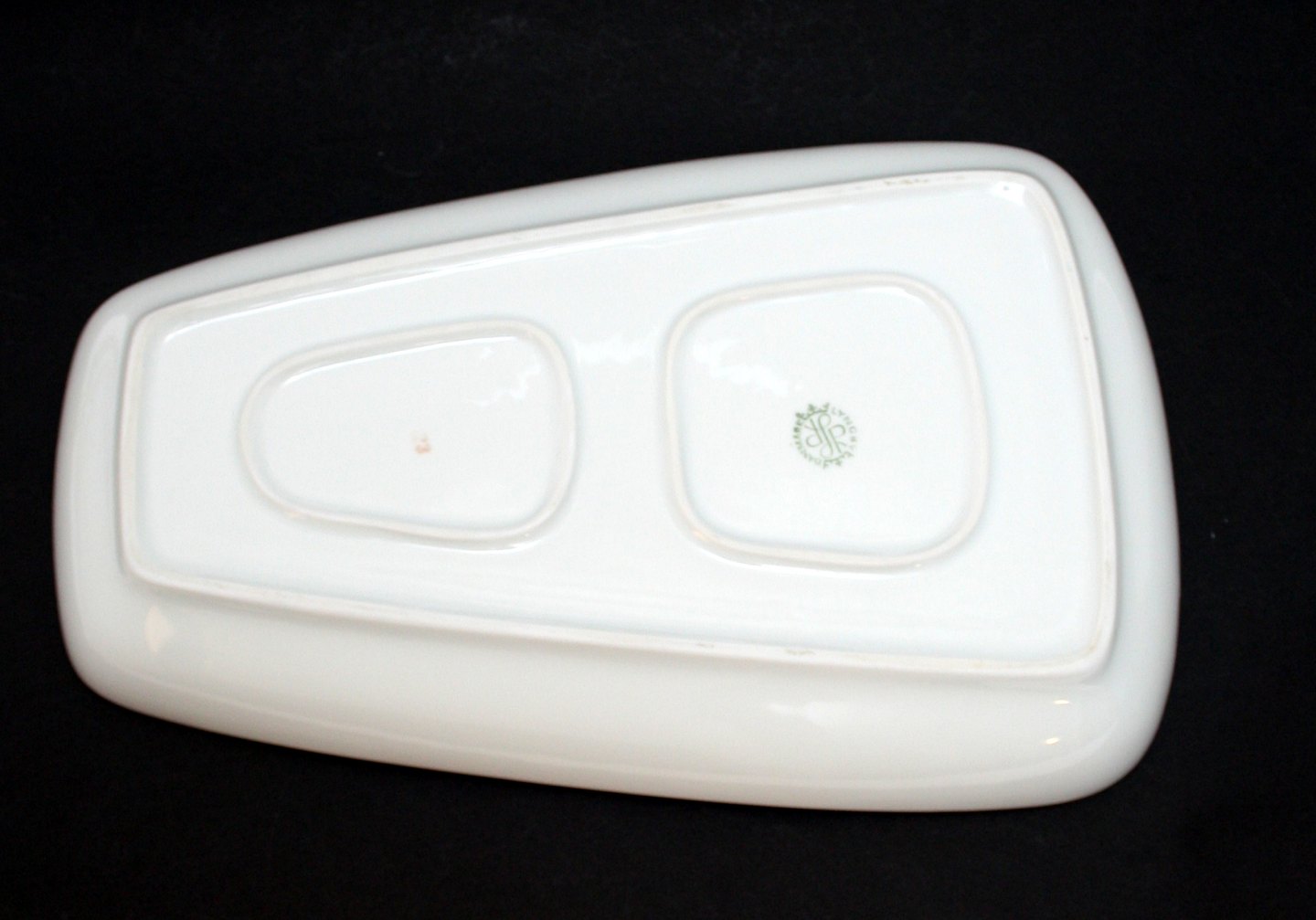 Lyngby, Dan-ild 64, Tangent, Serverings og stegefad stort. Højde 3,5 cm. Længde 33,5 cm. Bredde 21 og 12,5 cm. Perfekt stand. Pris: SOLGT