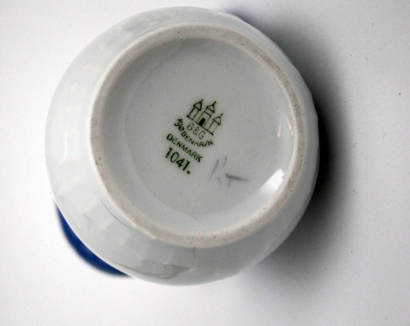 Bing & Grøndahl, Måge uden guld jernporcelæn, Flødekande. Nr. 1041. Højde 9 cm. Længde 9 cm. I. sortering. Ujævnheder i kant. Pris: SOLGT