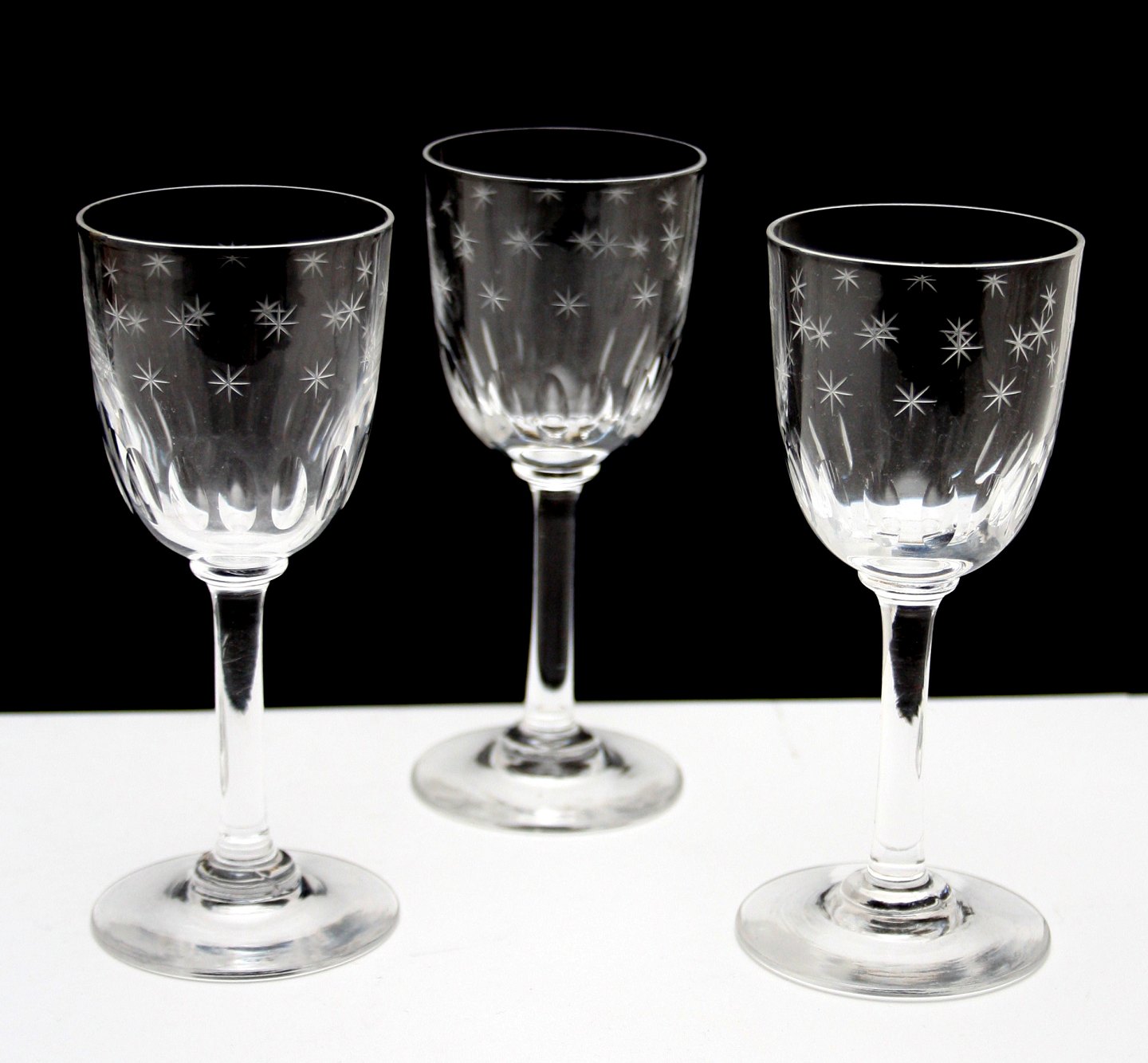 Holmegaard/Val Saint Lambert, Chr. den 9 krystalglas fra 1917 kataloget. Kumme har oliveslibning i bund og 2 rækker stjerneslibninger. Portvin. Højde 12,5 cm. Diameter 5 cm. Pris: SOLGT