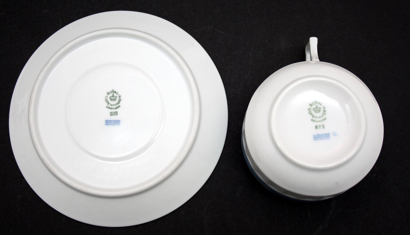 Nr. 072 ny produktion. I. sortering. Diameter 8,5 cm. Højde 5 cm. Underkop nr. 073. Diameter 14,5 cm. Flot stand. Pris: SOLGT