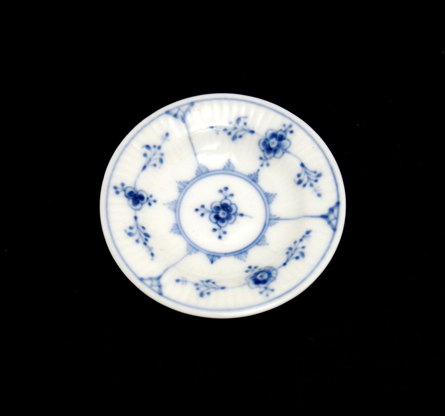 Royal Copenhagen, Musselmalet riflet. Kuvertaskebæger, asiet. Nr. 1/7. Diameter ca. 7 cm. Pris: 150 kr. stk. Lager: 4