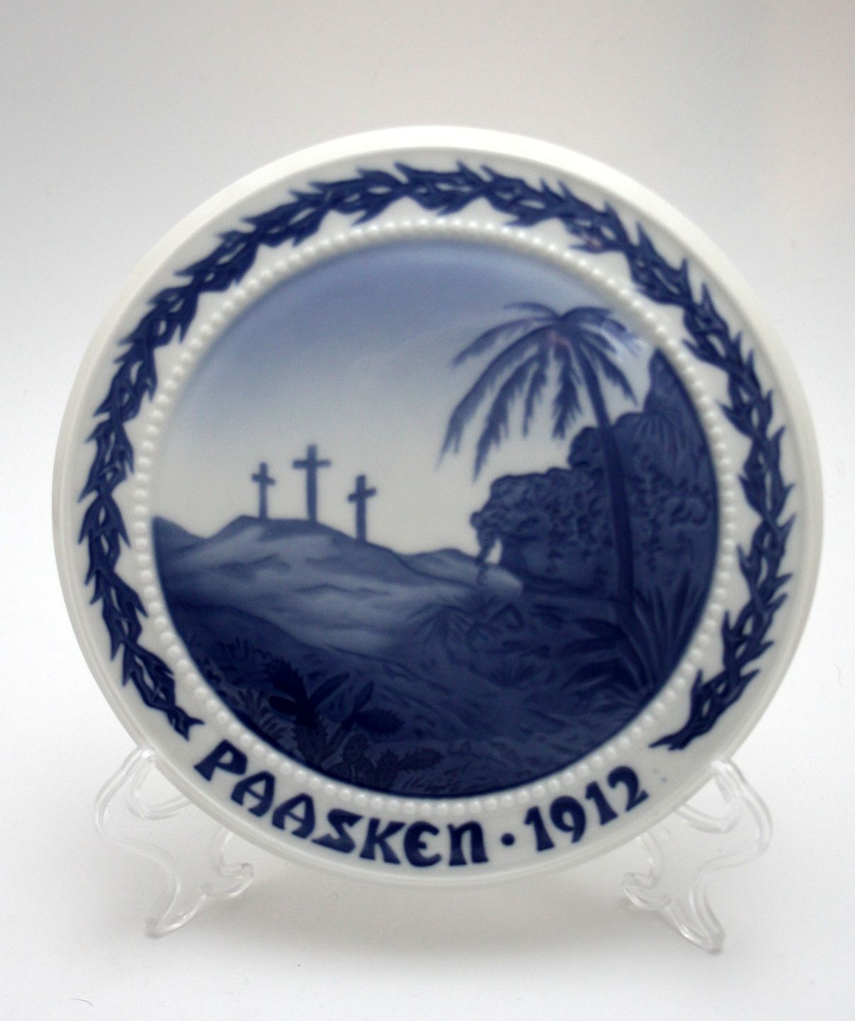 Bing & Grøndahl, Påskeplatte 1912. "Golgatha". Designet af Jens Peter Dahl Jensen. Diameter 18,5 cm. I. sortering. Pris: SOLGT