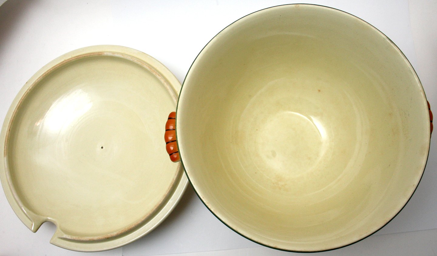 Aluminia, Morgenfrue. Designet af Niels Thorsson. Produceret i perioden 1934-1967. Luftmalet. Suppeterrin med låg. Diameter 25 cm. Højde 21 cm. Fin stand. Pris: 375 kr. stk. Lager: 1