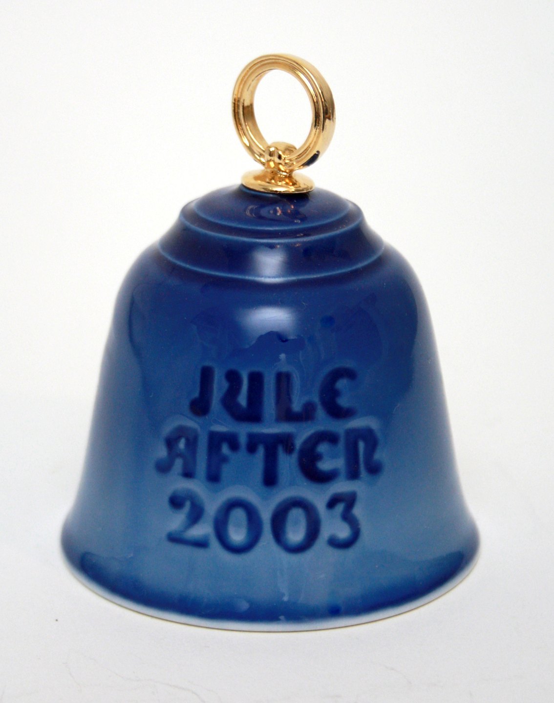 Bing & Grøndahl, Lille juleklokke 2003, Børn der bygger snemand. Højde 8 cm. I. sortering. Pris: SOLGT